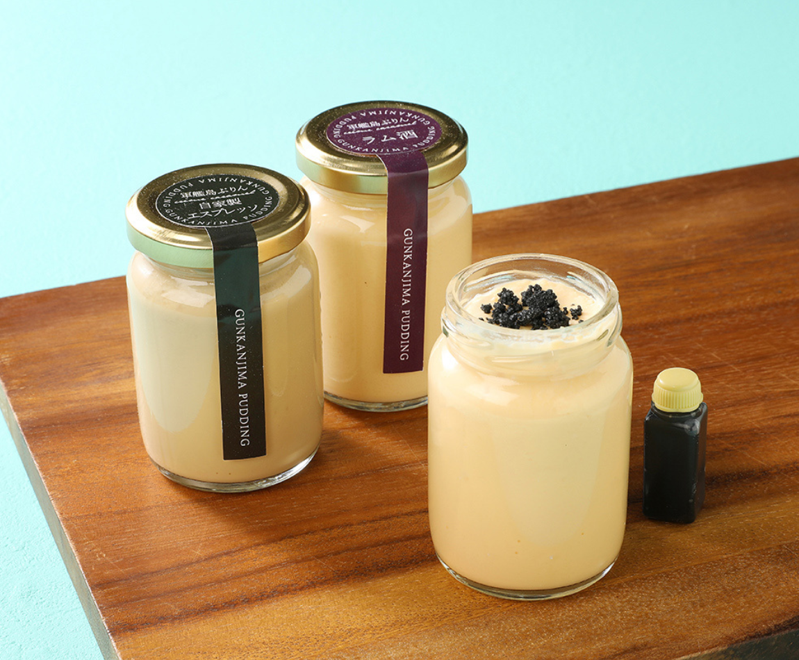 軍艦島ぷりん プレーン、エスプレッソ、ラム酒【各1個】560円(税込)から