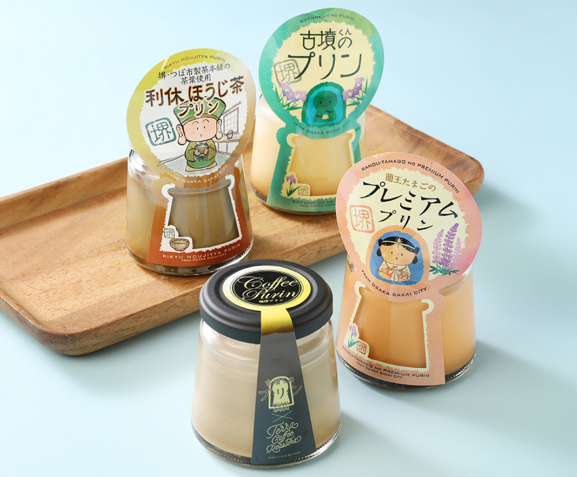 古墳くんのプリン、蘭王たまごのプレミアムプリン、利休ほうじ茶プリン、珈琲プリン【各1個】391円(税込)から