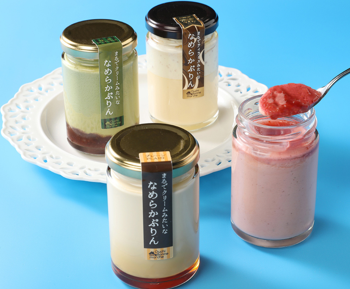 まるでクリームみたいななめらかぷりん プレーン、いちご、抹茶、ティラミス【各1個】451円(税込)から