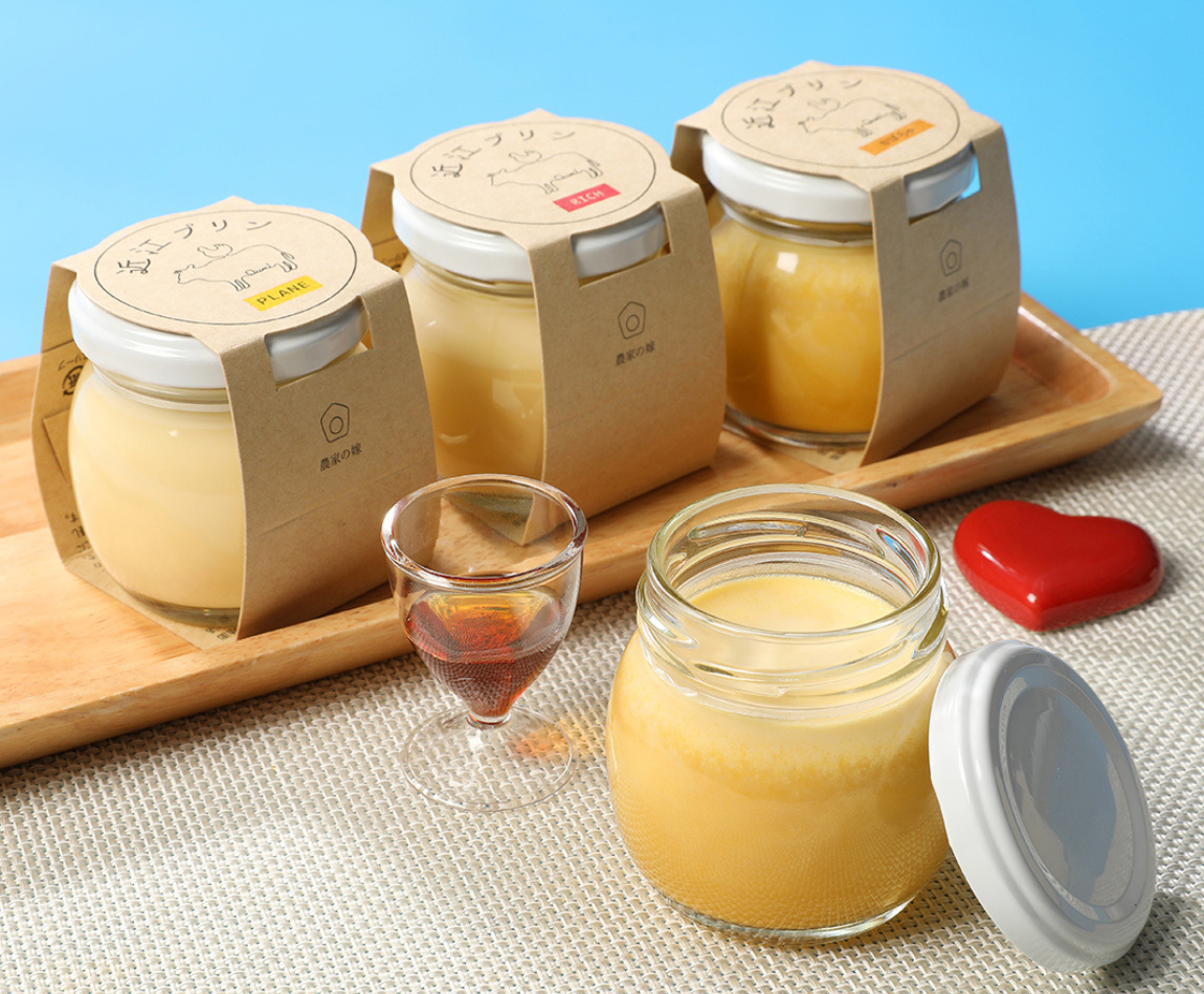 滋賀高島の平飼い鶏の卵と低温殺菌ノンホモ牛乳の厳選素材プリン。