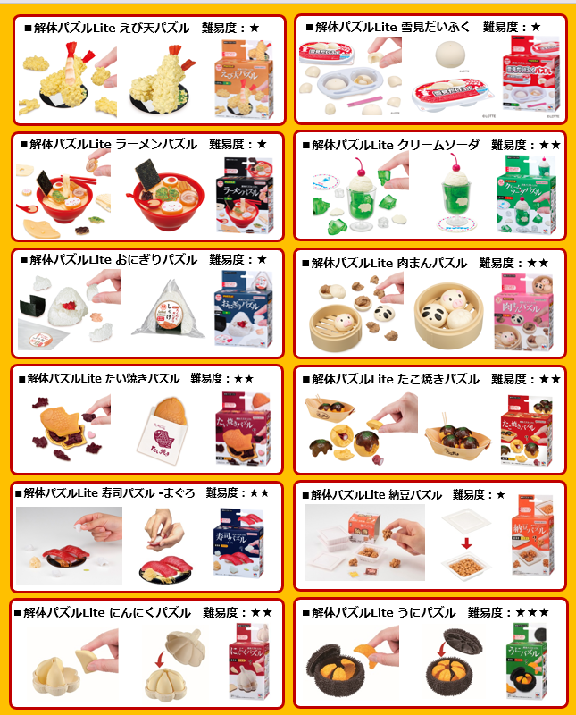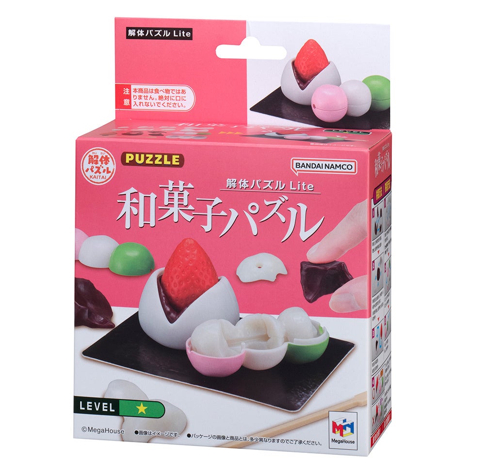 「解体パズルLite」シリーズは、本物そっくりのリアルな造形にこだわった遊びながら頭を使えて、集めても楽しい立体パズルです。今回の2商品は、完成後に並べるだけでも可愛らしい“小さな和菓子セット”となり、インテリアとしてもお楽しみいただけます。