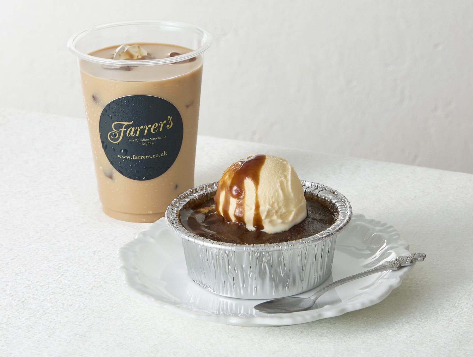 バニラアイスをのせたねっとり食感の温かいプディングを紅茶とセットで提供。