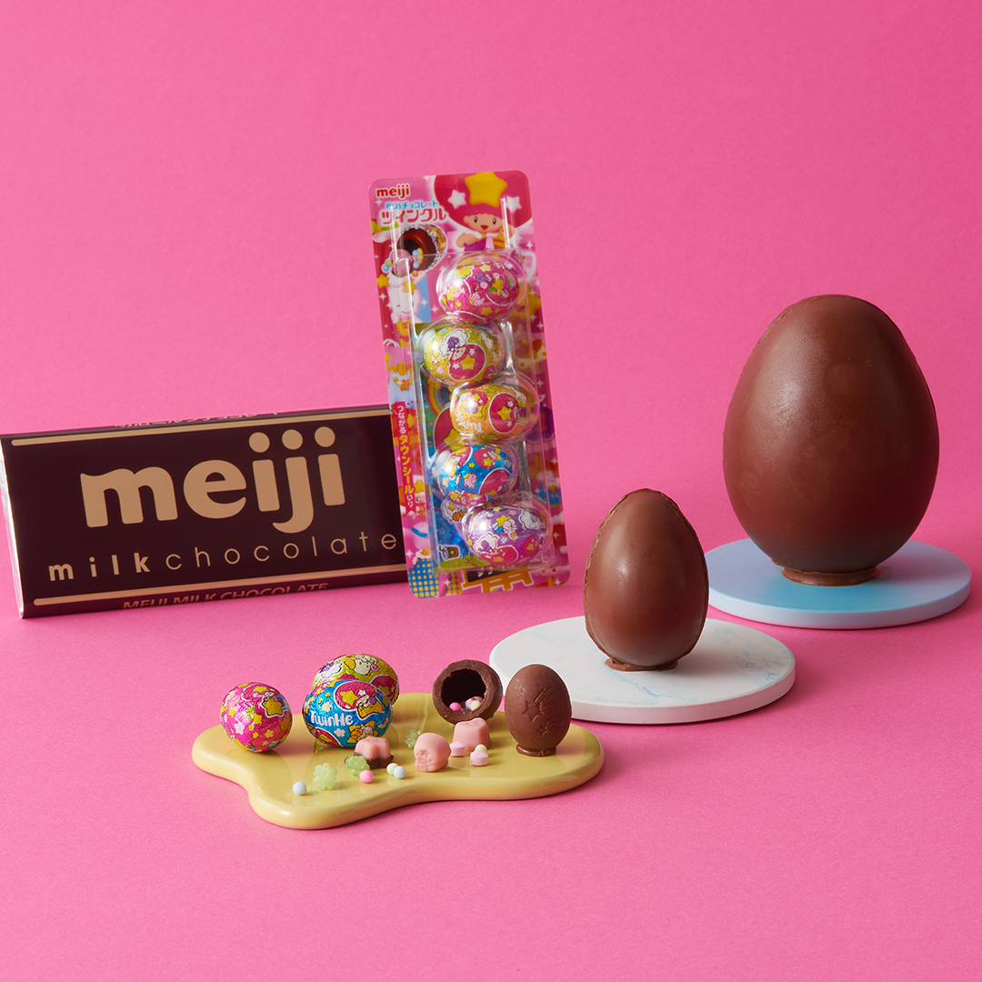 今年発売45周年を迎える、世代を問わず多くの人に愛されている明治の「ツインクル」。5色の銀紙に包まれた、かわいいたまご型のミルクチョコレートには、5種類のお菓子とカラフルなミンツが♪