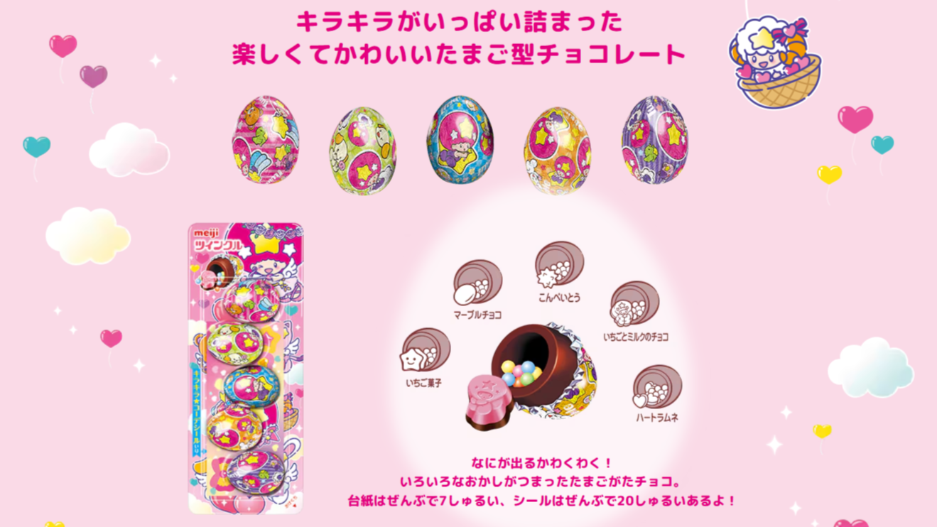 株式会社 明治(本社:東京都中央区、代表取締役社長:八尾 文二郎)が販売するたまご型のミルクチョコレート「ツインクル」は、2025年11月に発売45周年を迎えました。2026年11月までの間、アニバーサリーを記念した様々な企画を展開中です。その一環として、株式会社サンリオのリトルツインスターズとコラボレーションした「ツインクル×リトルツインスターズ お星さまのシール帳セット」を、2月17日(火)に発売します。