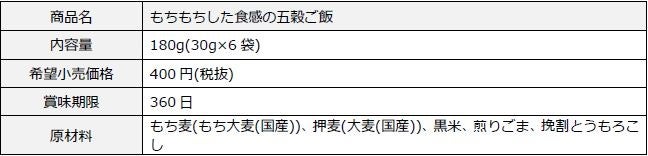 全国に300店舗以上展開する「大戸屋ごはん処」で提供されている「五穀ご飯」。その味を自宅で再現できる本商品は、発売以来多くのお客様に愛されてきました。 今回のリニューアルでは、食感、香ばしさ、美味しさをさらに追求。炊きたてはもちろん、時間が経って冷めても「もちもち」が続く品質に磨きをかけ、お弁当やおにぎりでもお店の味を楽しめるよう進化しました。お店で食べるおいしく健康的な五穀ご飯の味わいを是非ご家庭でもお楽しみください。