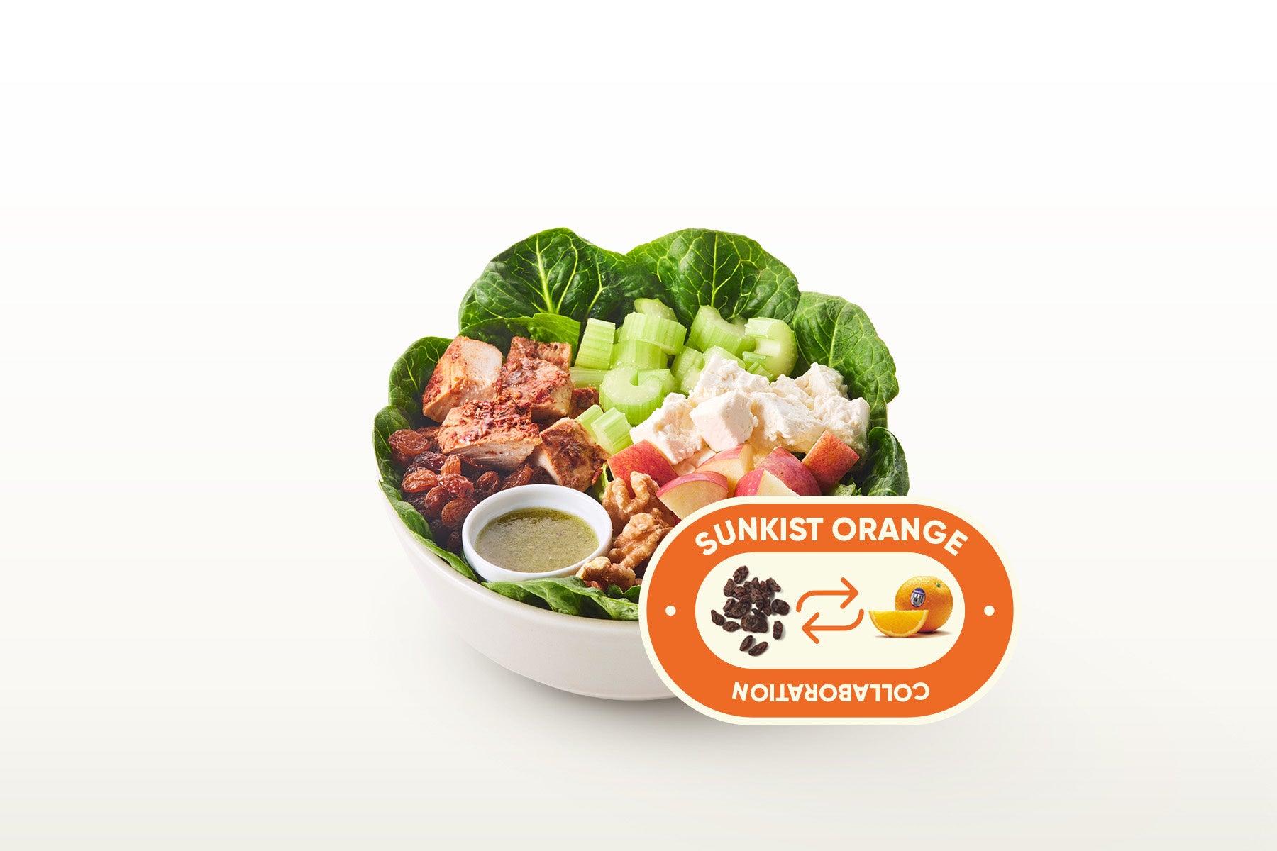 サンキスト オレンジのジューシーな甘みと爽やかな香りが、チキンやチーズのコク、アップルやウォルナッツの食感と重なり、ヒップスターのフルーツ感をアップデートしながら、軽やかさと満足感を両立した、いまだけの限定コラボサラダです。