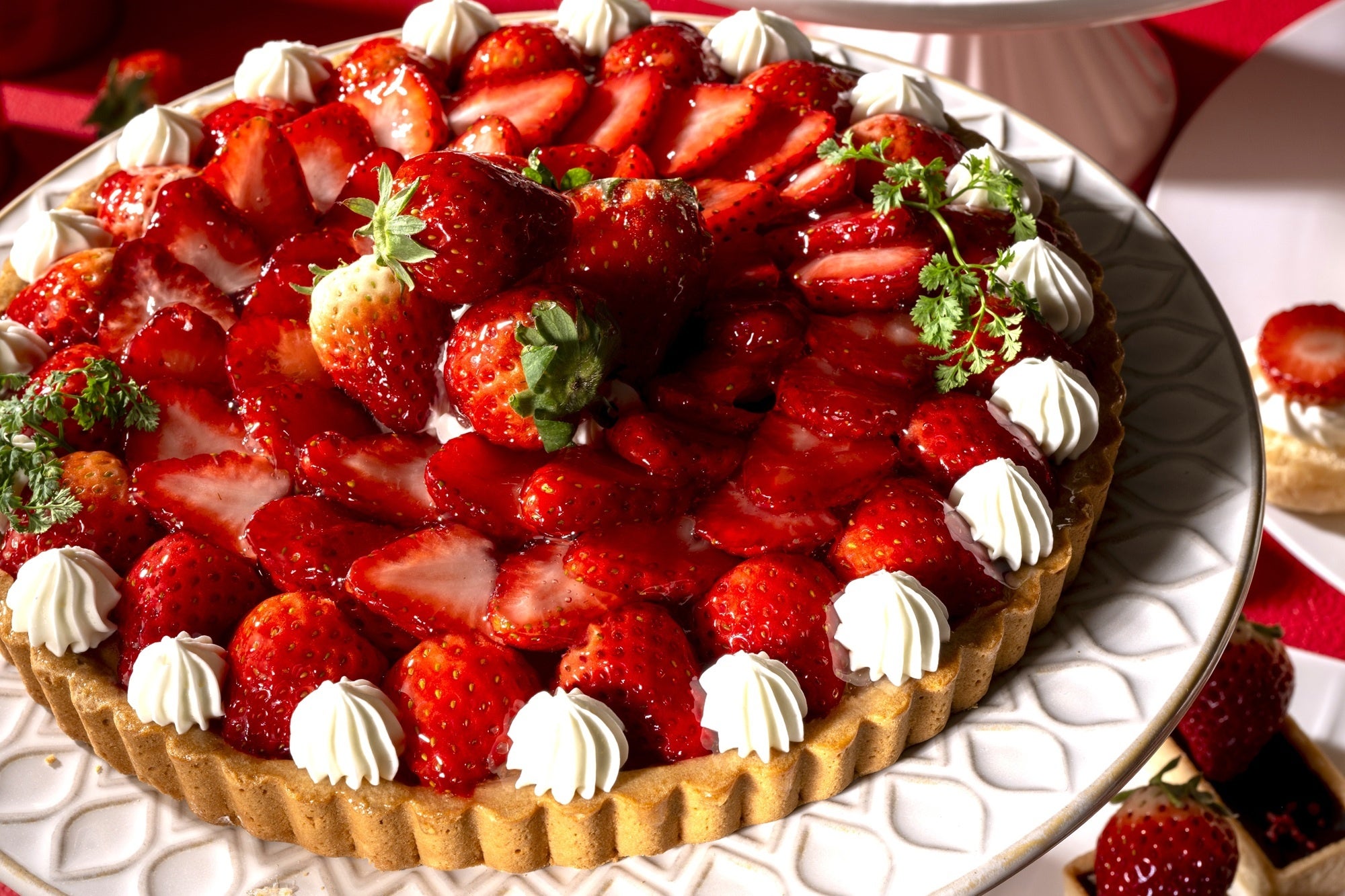 可憐な桜色と艶やかなあまおうの赤が彩る、優雅な春のひとときをお楽しみください。