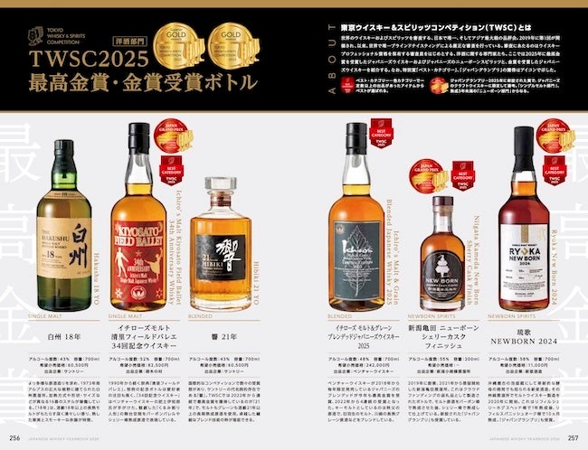 このほか、東京ウイスキー&スピリッツコンペティション(TWSC)最高金賞、金賞、「ジャパングランプリ」に輝いたボトルも解説。