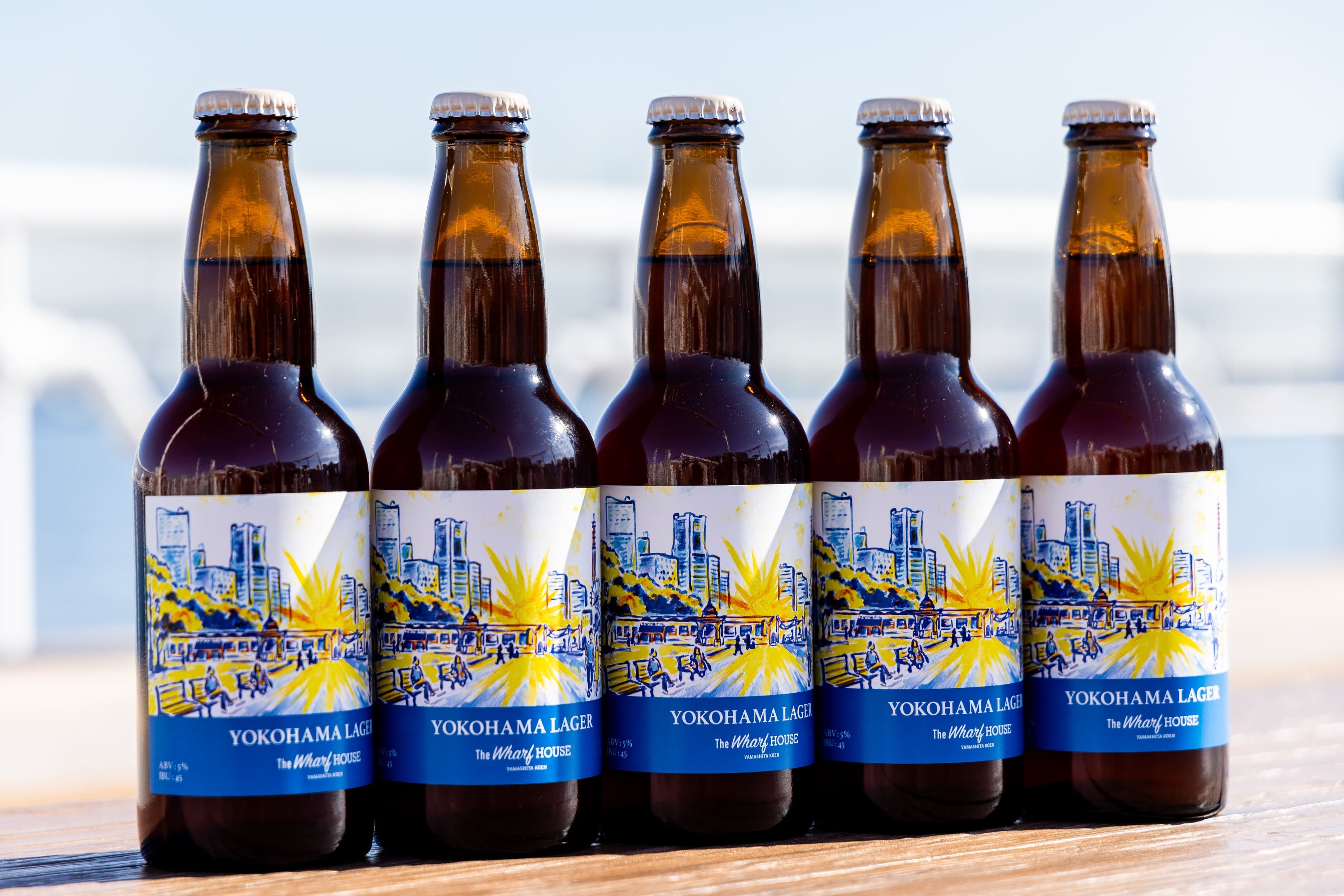 ザ・ワーフハウス山下公園は、横浜市内で最も長い歴史を持つローカルビアカンパニー「横浜ビール」のクラフトビールを、オープン以来80,000杯以上販売・提供してきました。多くのお客さまにご好評いただいたこの味わいを、さらに幅広く届けたいという思いから、「オリジナルラベル 横浜ラガー」が誕生しました。ラベルデザインは、横浜ビールの「めぐりあいシリーズ」を手がけるアーティストに依頼し、ワーフハウスらしい港の空気感を表現した、特別な一本が完成しました。ワーフハウスショップでは、「オリジナルラベル 横浜ラガー」をはじめ、横浜ビールの定番クラフトビールを横浜土産として購入できます。