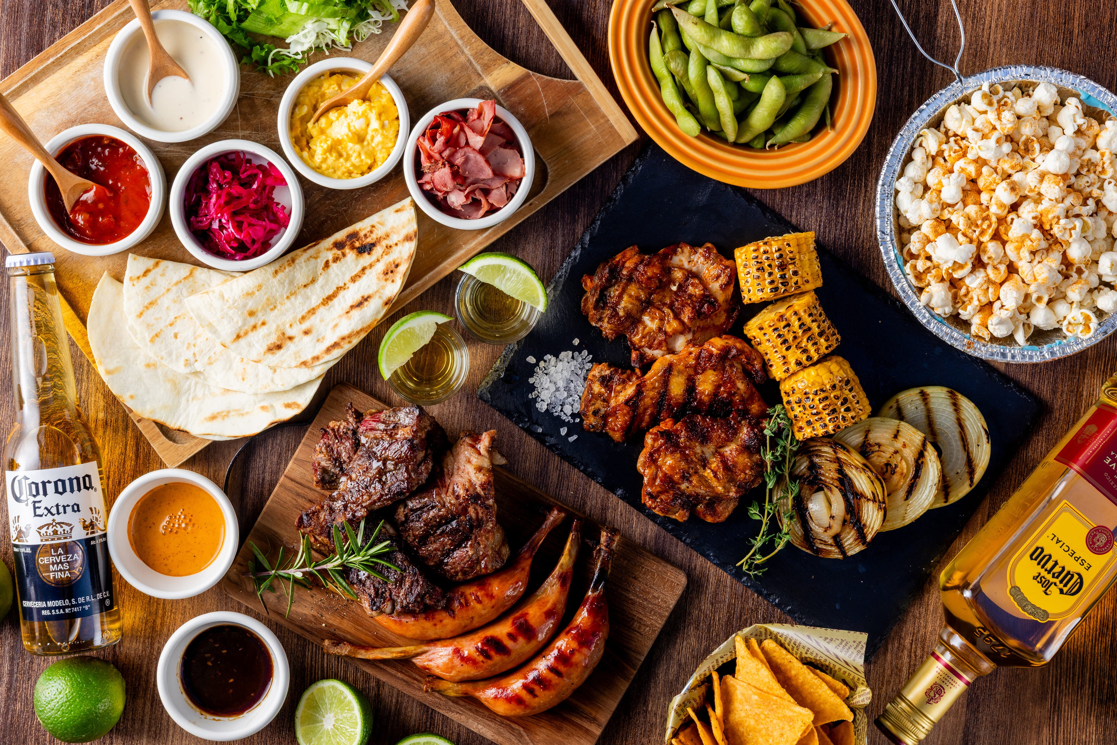 トルティーヤに焼き上げたお肉とお好みのトッピングをのせて楽しむ、にぎやかなパーティースタイルコース!
