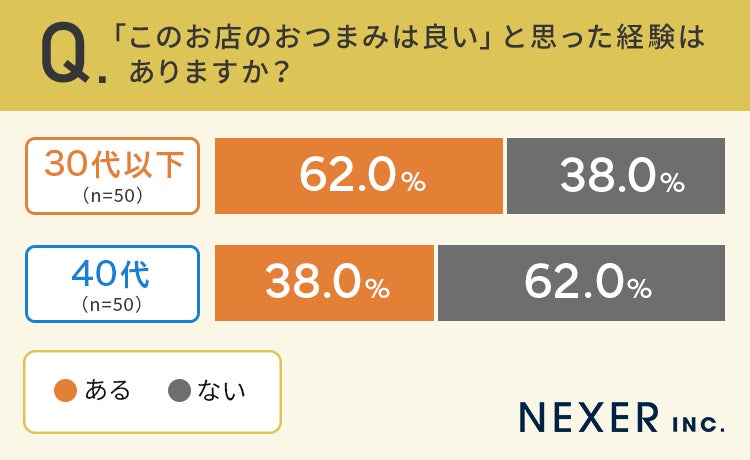 最後に、これまでに「このお店のおつまみは良い」と感じた経験があるかどうかを聞いてみました。