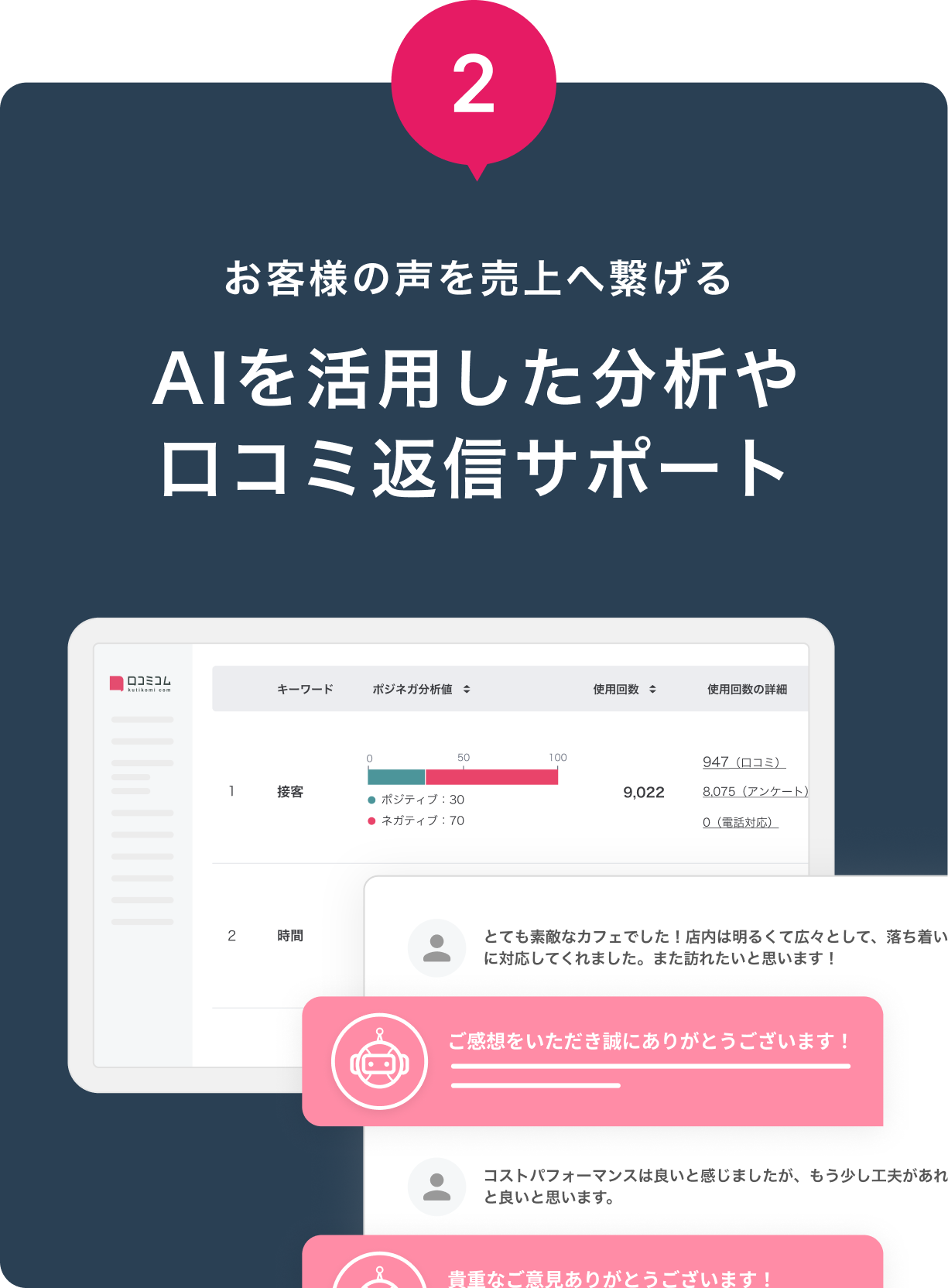 口コミを一元管理!AIが分析・返信をサポート