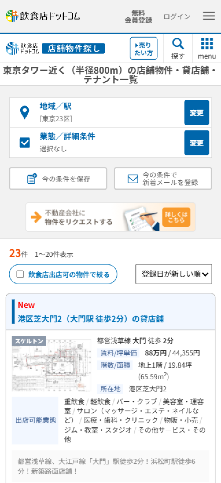 飲食店向け店舗物件情報サイト「飲食店ドットコム・店舗物件探し」(https://www.inshokuten.com/)を運営する株式会社シンクロ・フード(本社:東京都渋谷区、代表取締役:大久保俊、東証プライム市場:3963)は、2026年2月16日より、特定のランドマークや施設周辺から物件を検索できる新機能「人気スポットから物件を探す」機能を提供開始しました。本機能により、「東京タワー近く」や「大学近く」といった具体的なスポットを指定し、その地点から徒歩10分圏内(半径約800m圏内)にある店舗物件をスムーズに一覧表示することが可能となります。