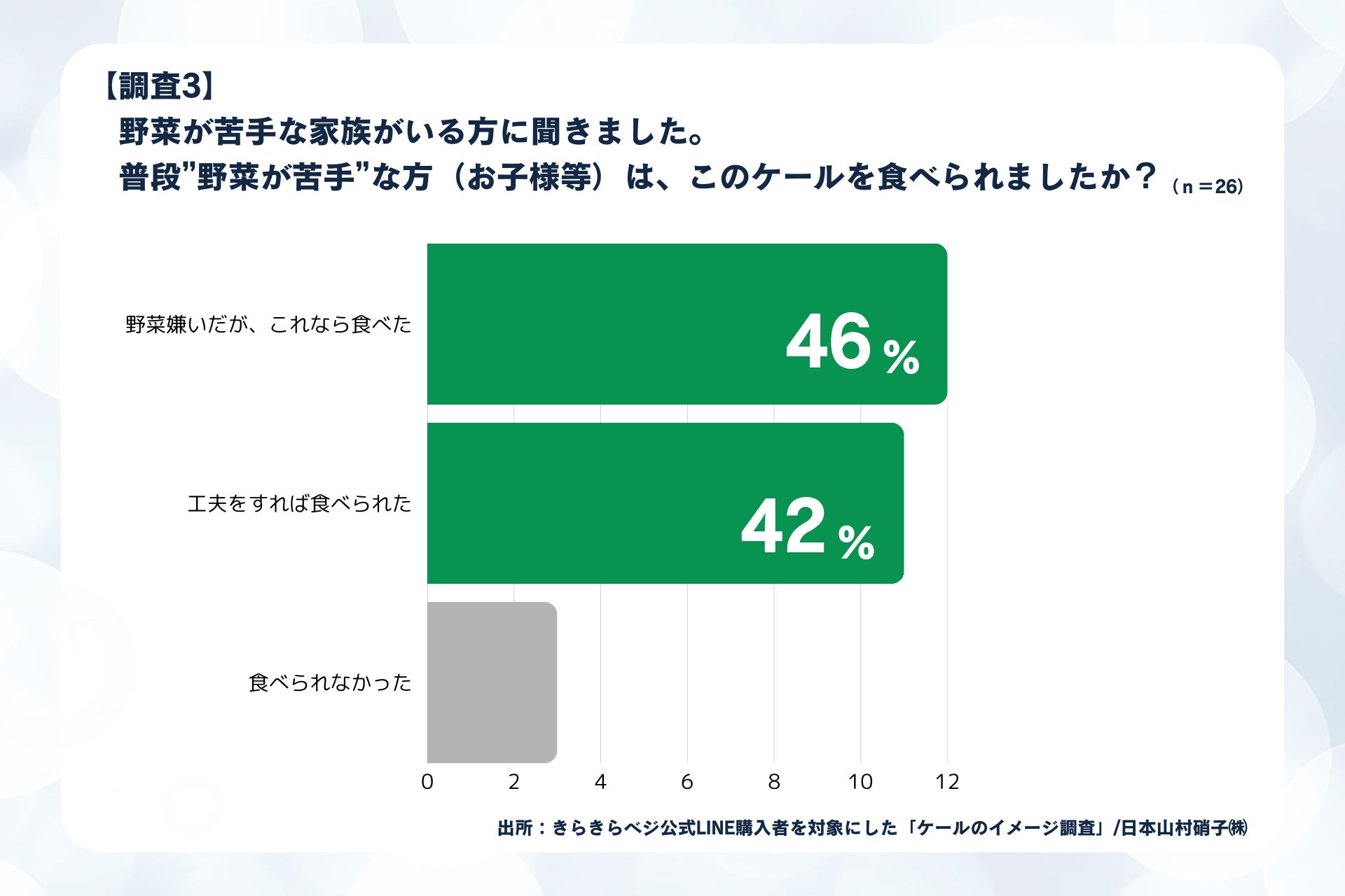 調査3. 【野菜嫌いの克服】野菜嫌いのお子様などの88%が完食