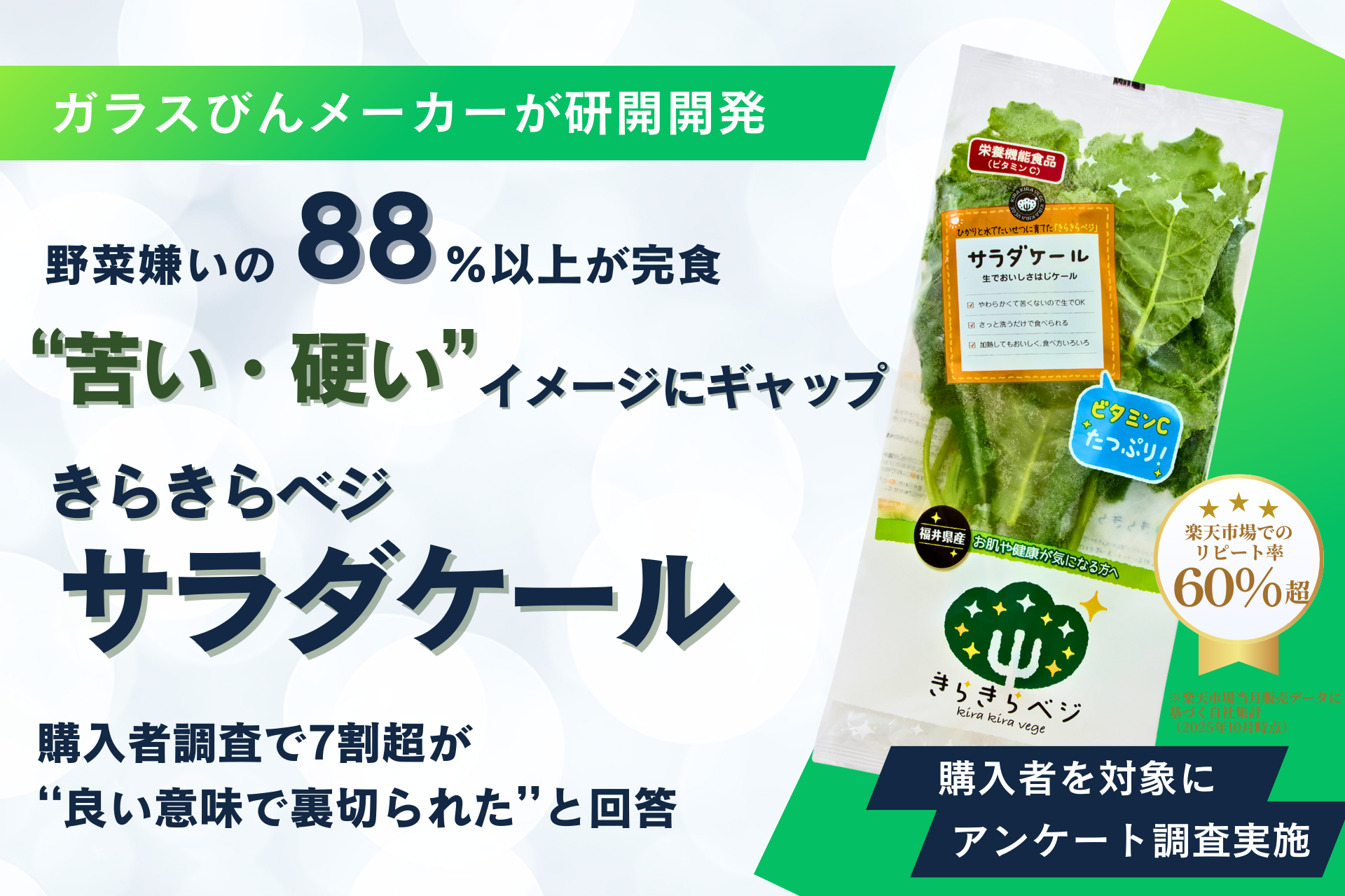 日本山村硝子株式会社(本社:兵庫県尼崎市、代表取締役 社長執行役員:山村 昇、以下 当社)は、自社が展開する植物工場野菜ブランド「きらきらベジ」の主力商品である「サラダケール」の購入者を対象に意識調査を実施しました。