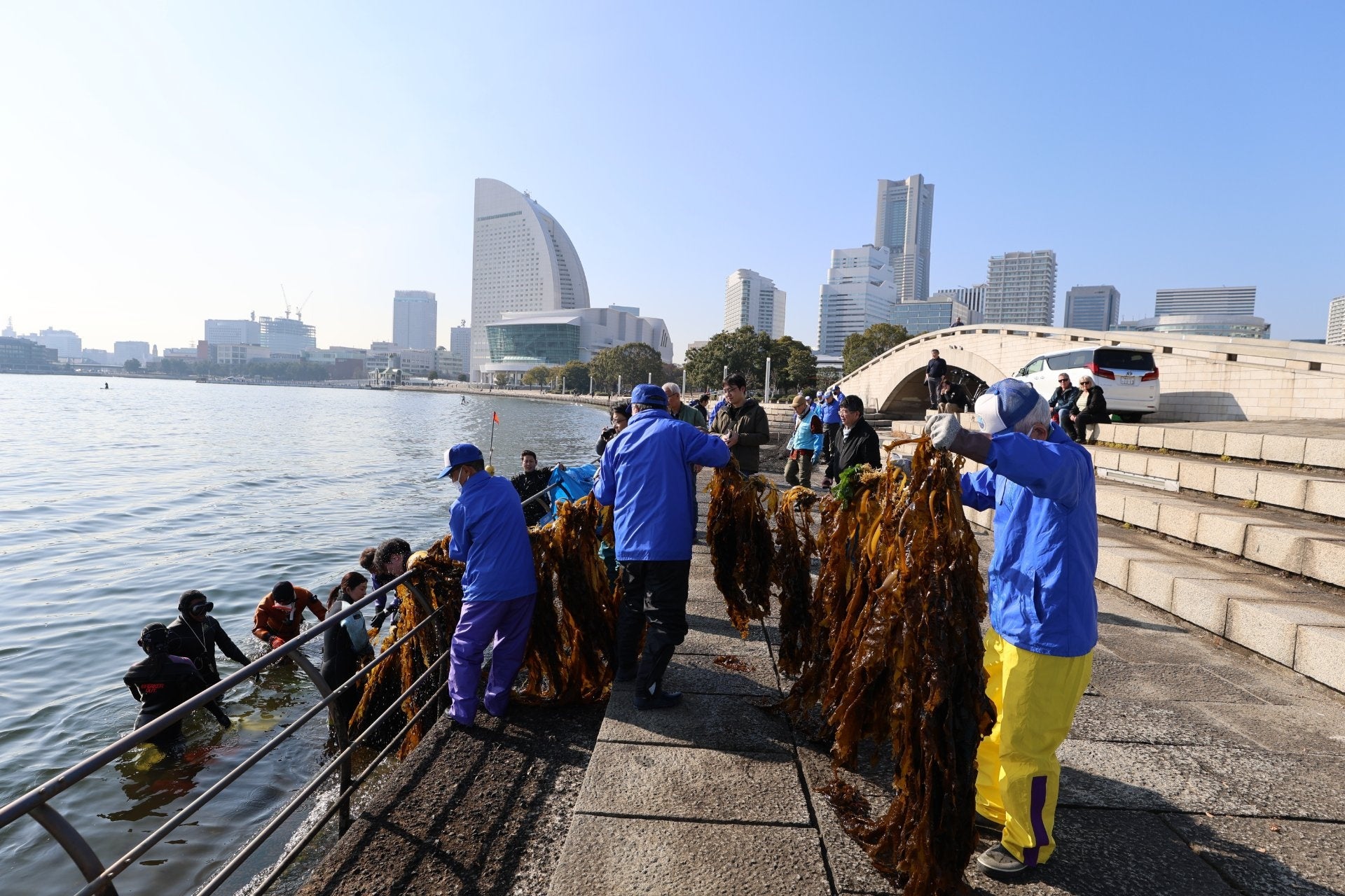 2026年2月14日、高校生たちは、横浜・みなとみらいの臨港パークにてワカメの収穫を実施。自らの手で海と向き合い、その恵みをどのような形で地域に届けられるかを考え、ワカメを使用したパンとして仕立てることになりました。食品としての提供に留まらず、海洋環境への関心や、次世代の行動が生み出す価値を共有する場として実施します。