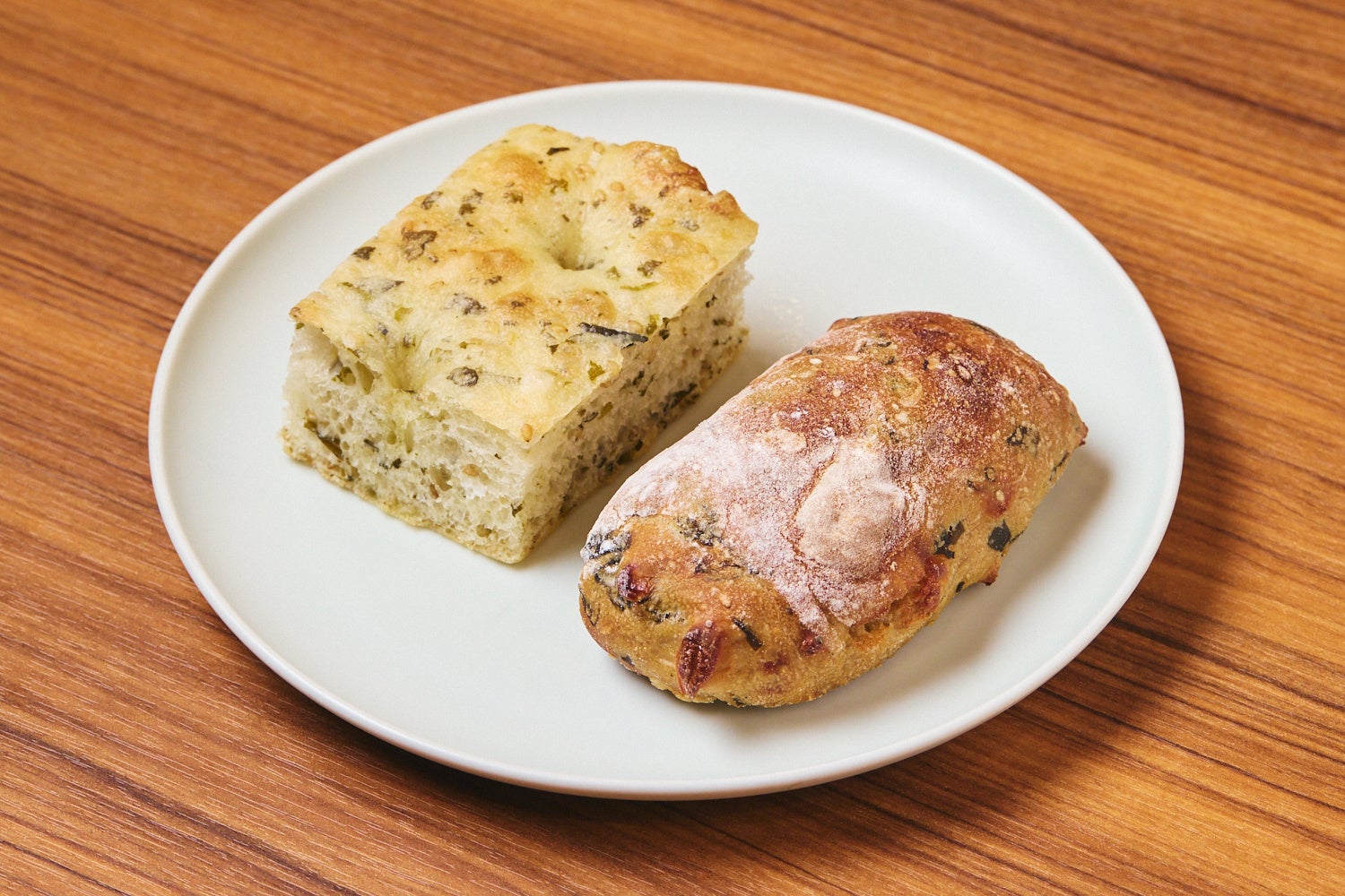 シンプルな生地にオリーブオイルを練り込み焼き上げました。外は香ばしく、中はしっとりとした食感が特徴です。