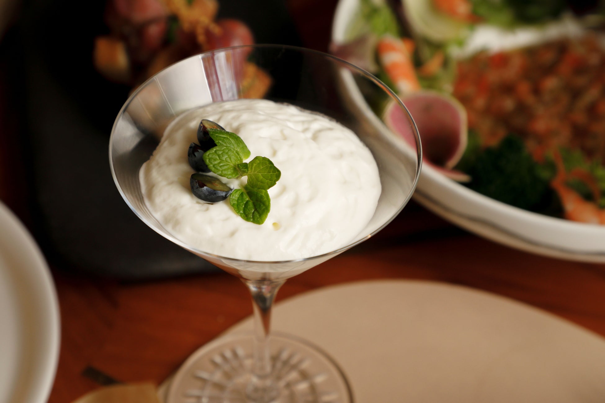 京都の甘酒を使用した「ギリシャヨーグルトパフェ」は空気を含んだ軽やかな口当たりが、何度も試したくなるひと品。