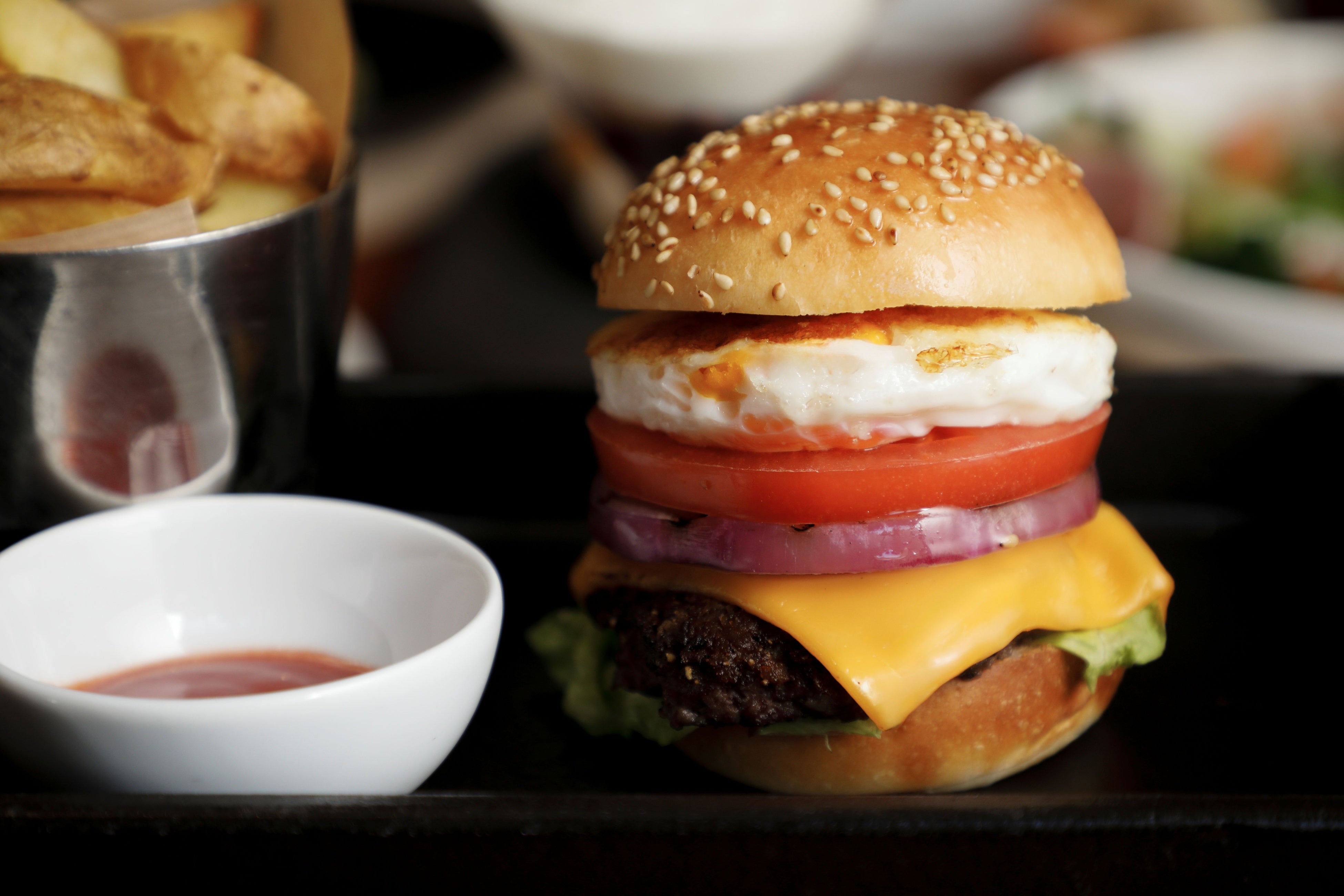 自家製のバンズで、和牛のパティ、レタス、トマト、オニオン、チェダーチーズをサンドした「ザ・ウィークエンドスマッシュバーガー」は、人気メニューのひとつ。スパイスの効いた自家製のシーズニングをアクセントに、食べやすいサイズのバーガーに仕上げました。