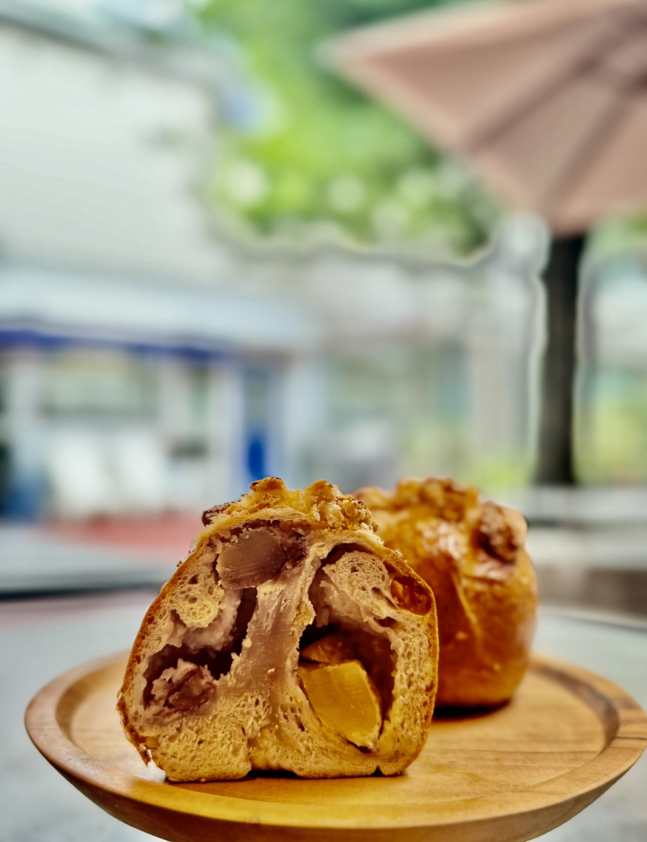 くるみを練りこんだ「ふか」の生地で、モンブランクリームとごろっとした栗を包み、焼き上げました。トッピングはクッキー生地。生地と栗とクッキー生地の食感の違いも楽しみのひとつ。