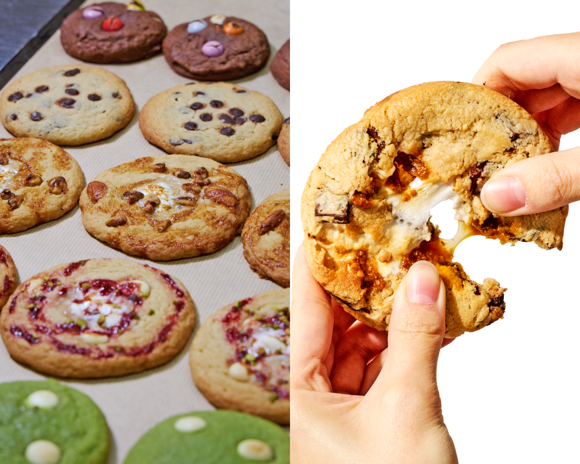 キャラメルやはちみつ、マシュマロ、飴などを忍ばせた弾力のあるやみつき食感と濃厚な味わいが特徴の “ねっちりクッキー”の人気急上昇中。1つで大満足!でももう1つ食べたくなるご褒美感と、中身が溶け出す様子やごろっとした厚みのあるSNS映えするビジュアルで、若者を中心に人気を集めています。