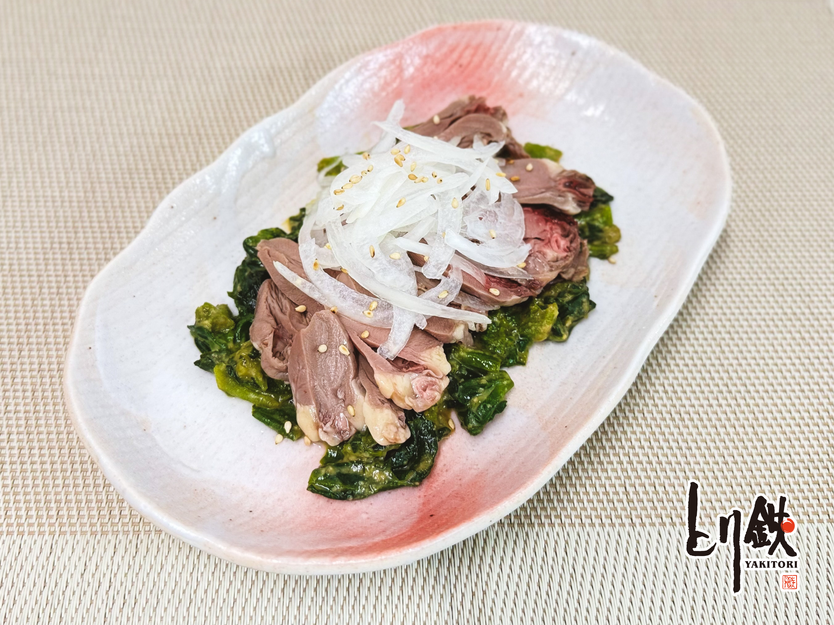 ■鶏こころ 菜の花の酢味噌ソース