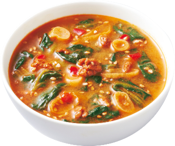 ・唐辛子の辛味と魚介・鶏・牛のエキスを組み合わせた旨辛スープです。