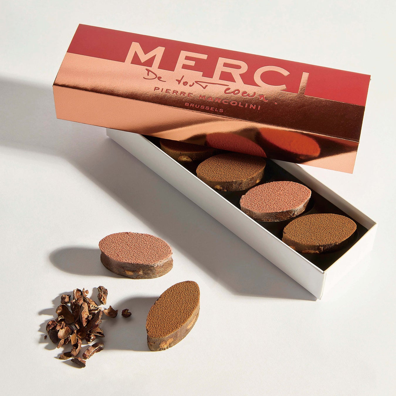 「世界を旅するショコラティエ」ピエール マルコリーニが、日本各地を巡って生み出した特別なアソート。徳島県産のスダチや佐賀県産の海苔など、大切に育まれた日本の素材を使い、今年のテーマ 「Merci de tout Cœur (心からありがとう)」 の気持ちを込めて9種のチョコレートに仕立てました。