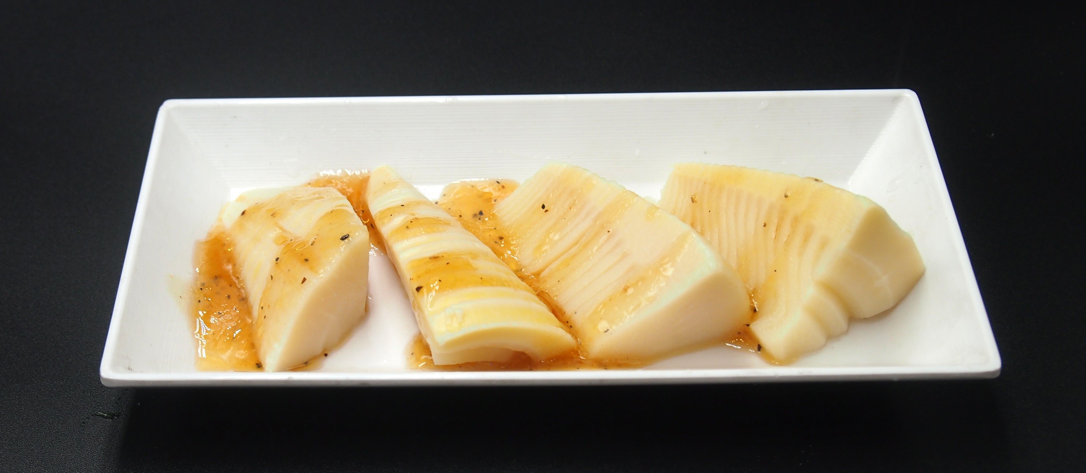 ◆穂先たけのこ焼:やわらかくておいしいたけのこのトップのみ使用しました。自慢の塩ダレで味付けしたタケノコを香ばしく焼いてお召し上がりください。