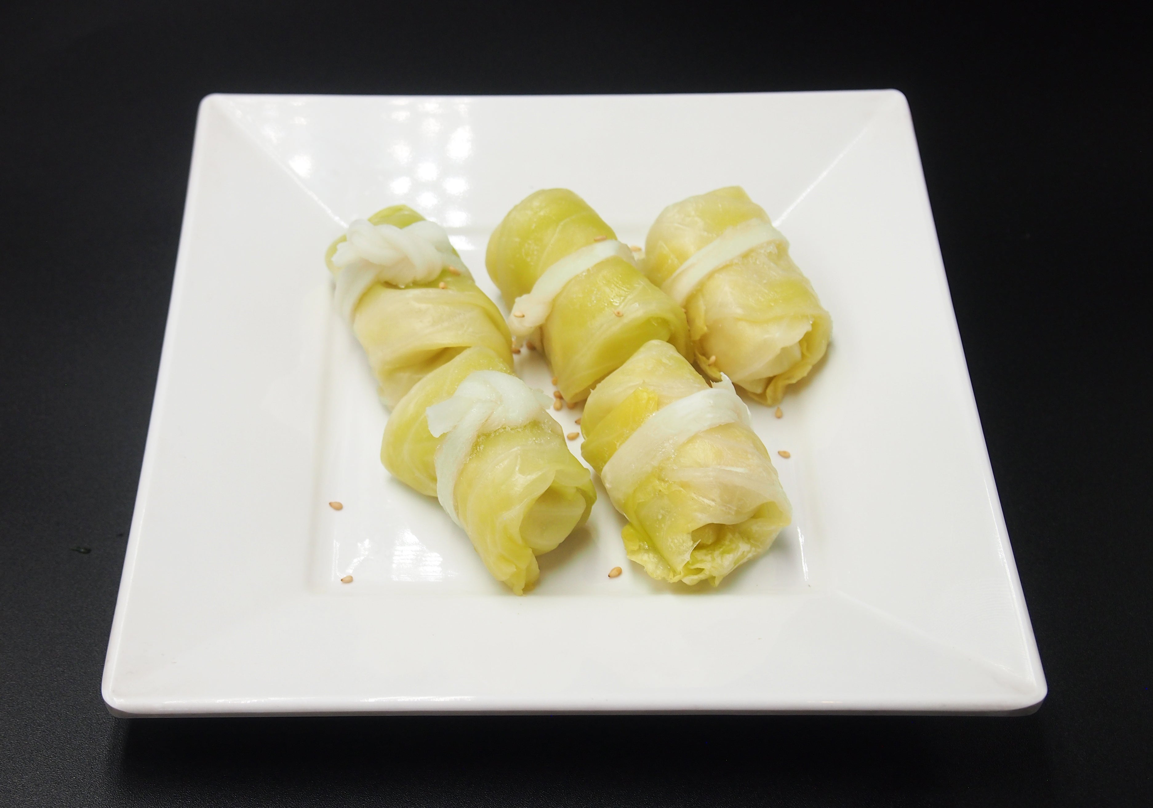 ◆焼きミニロールキャベツ:自慢の焼肉ダレで味付けした、かわいいサイズのロールキャベツを焼いてお召し上がりください。