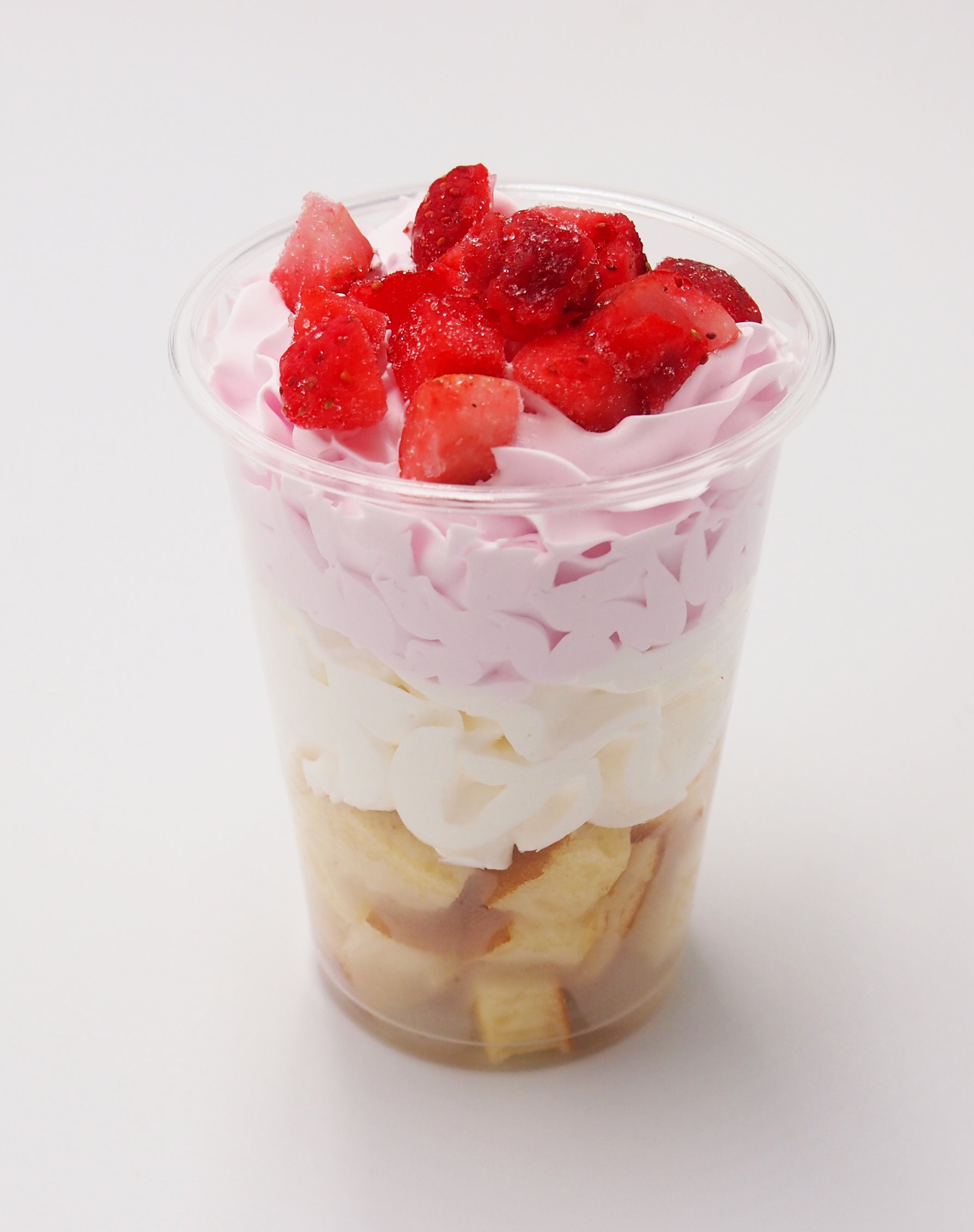 ◆イチゴのカップケーキ:もちもちパンケーキに2種のホイップとフローズンイチゴをのせたカップケーキです。