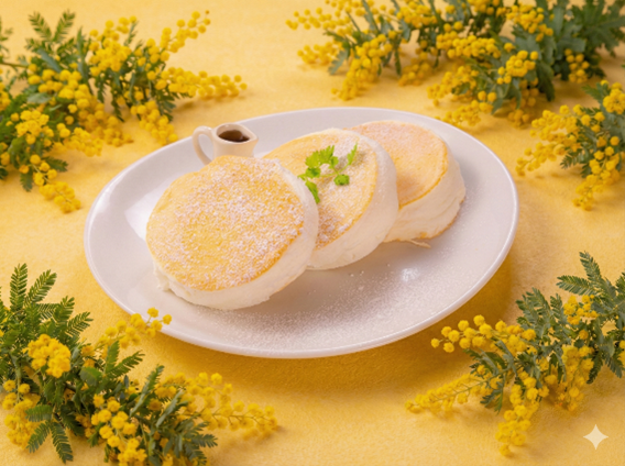 一枚ずつ丁寧に焼き上げた、ふわふわ食感の贅沢なパンケーキ。
