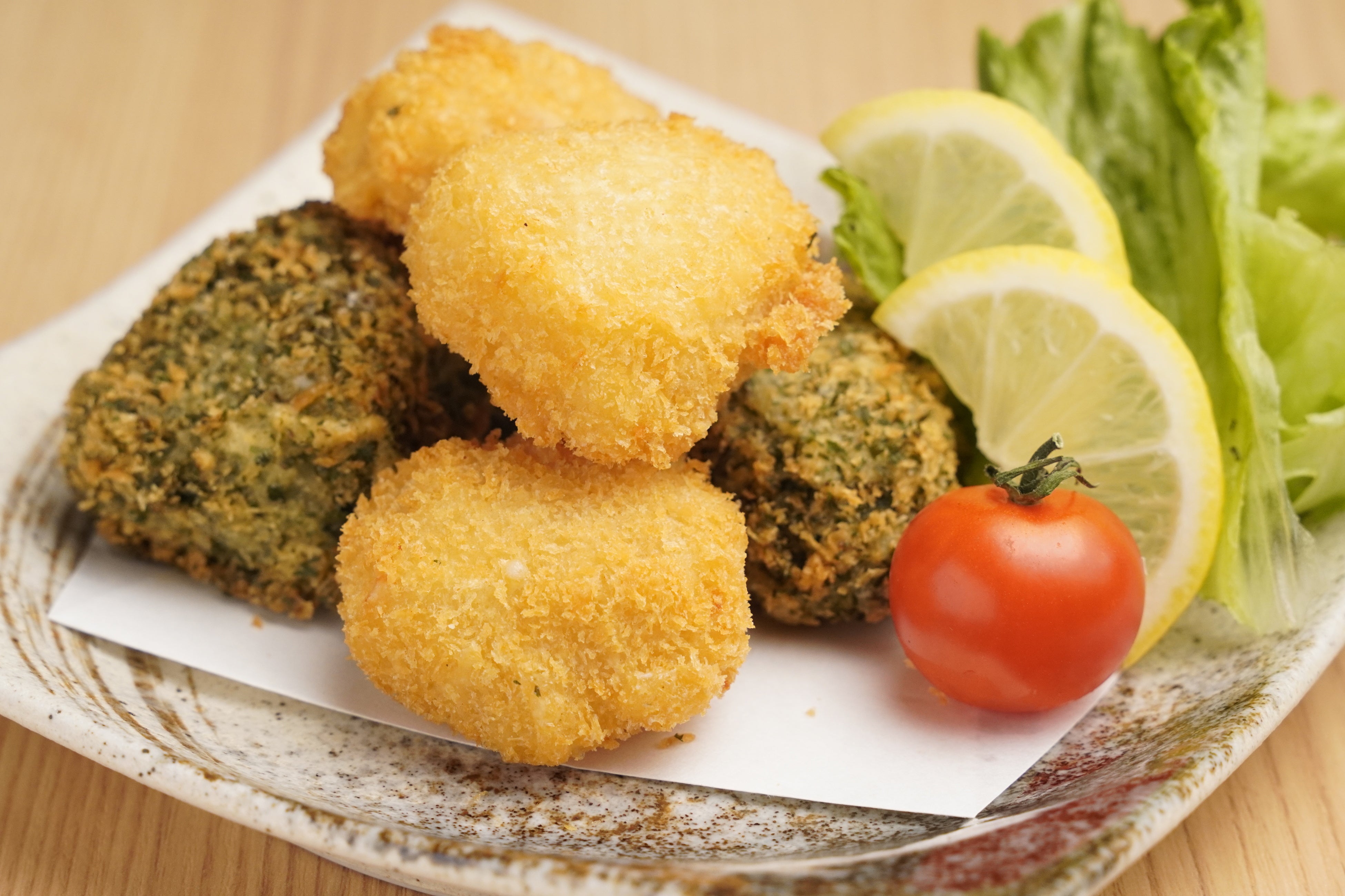 北海道・小林牧場のカマンベールとカマンブルーチーズを使用。外は軽やかな衣、中は濃厚でクリーミー。ワインやウイスキーとの相性も良く、大人向けのチーズメニューとして提案します。