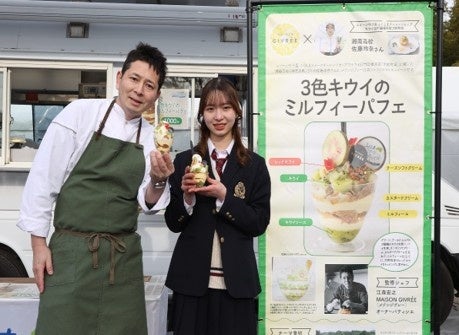ふくしまスイーツフェスティバルは、スイーツの力で福島の復興を応援することを目的に開催。大熊町のキウイ、富岡町のパッションフルーツ、楢葉町のサツマイモ、広野町のバナナをそれぞれ使った4種類のスイーツが味わえます。スイーツは、昨年8月に福島県のJヴィレッジで開かれた各町特産品を使ったスイーツ作りのコンテスト「スイーツ甲子園 ふくしまチャレンジカップ」で、各町賞に輝いた高校生4組と審査員の著名パティシエが考案しました。