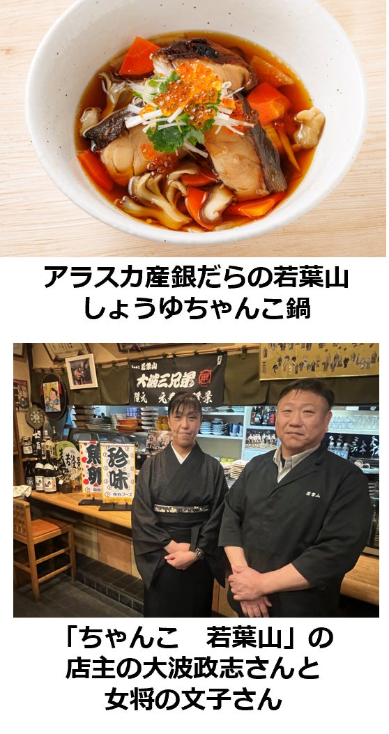 「アラスカシーフードマーケティング協会&中外フーズ」ブースでは、100%天然のアラスカ産銀だらを使い、大相撲の若元春ら〝大波三兄弟〟の両親が営む福島市の人気店「ちゃんこ 若葉山」の店主で元力士の大波政志さんが監修した「アラスカ産銀だらの若葉山しょうゆちゃんこ鍋」を販売します。伊達市の中外フーズが提供するアラスカ産銀だらは、清涼で水温の低い海に育まれ、極上の脂をたくわえています。アラスカではギンダラを含む全漁業が、厳しい漁業管理のもと漁獲されています。また漁獲後に急速凍結で鮮度を保持しており、天然の美味しさを存分に堪能できます。