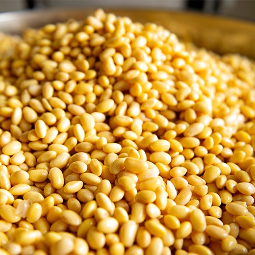 風味と甘みの強い「とよまさり」と、タンパク質が豊富でしっかりとした旨みが特徴の「フクユタカ」を独自の比率でブレンドすることで、1種類の大豆では表現できない、濃厚で深い味わいとコクを生み出します。