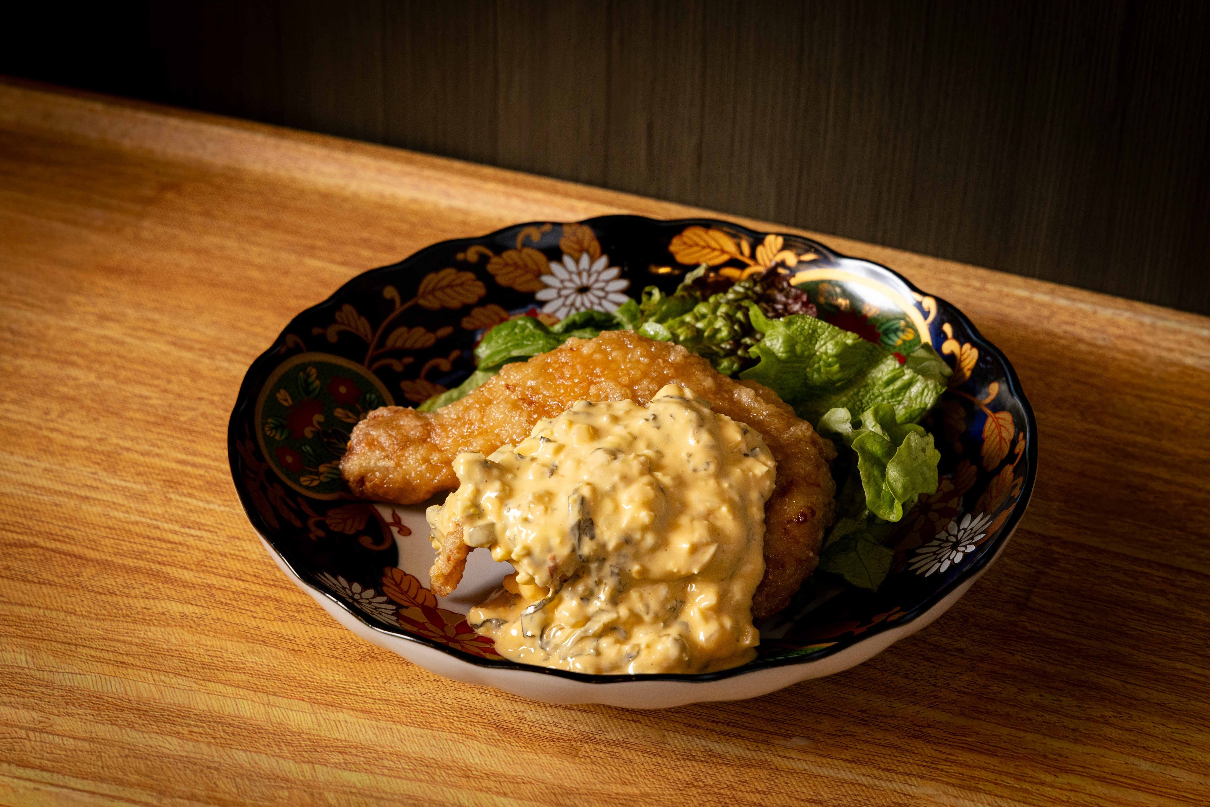 旨みあふれる骨付鳥に、自家製タルタルをたっぷり絡めた満足度の高い一皿。