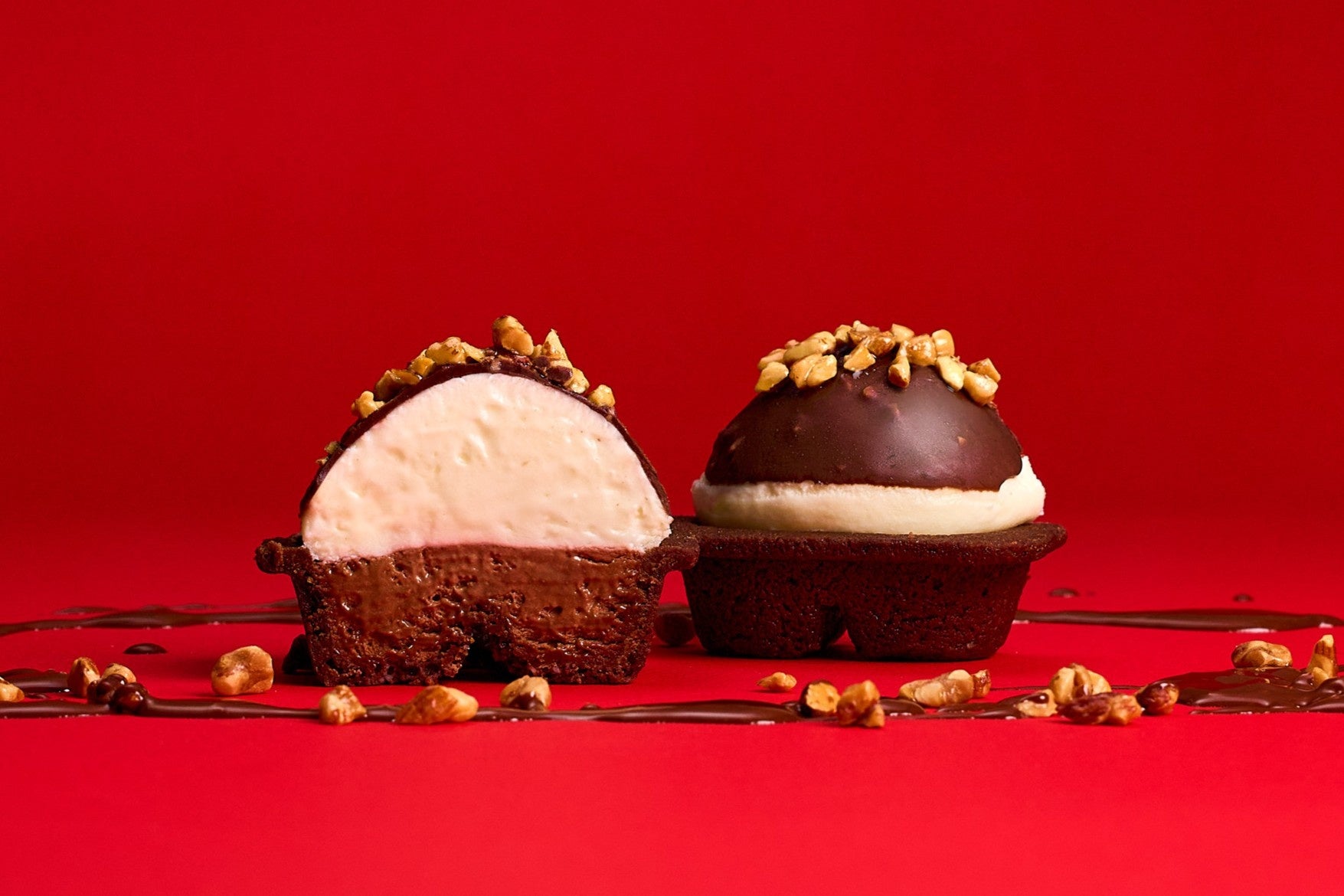 濃厚なのにエアリーで軽い舌触りの生ガトーショコラに、ふわとろのチーズムースがまろやかに調和した「チーズワンダージャイアントブラック」。飴がけしたナッツと、パリッと割れてすぐ溶けるチョコレートコーティングがより多層的な食感をもたらし、リッチな味わいと余韻が残る新商品・ショコラナッツ生チーズケーキです。