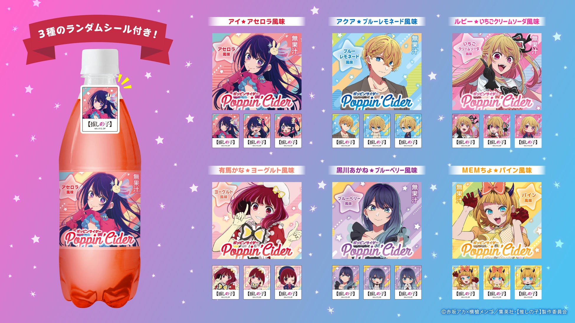 ポッピンサイダー【推しの子】が新登場!個性的なキャラクターたちをイメージした6種のフレーバーで展開