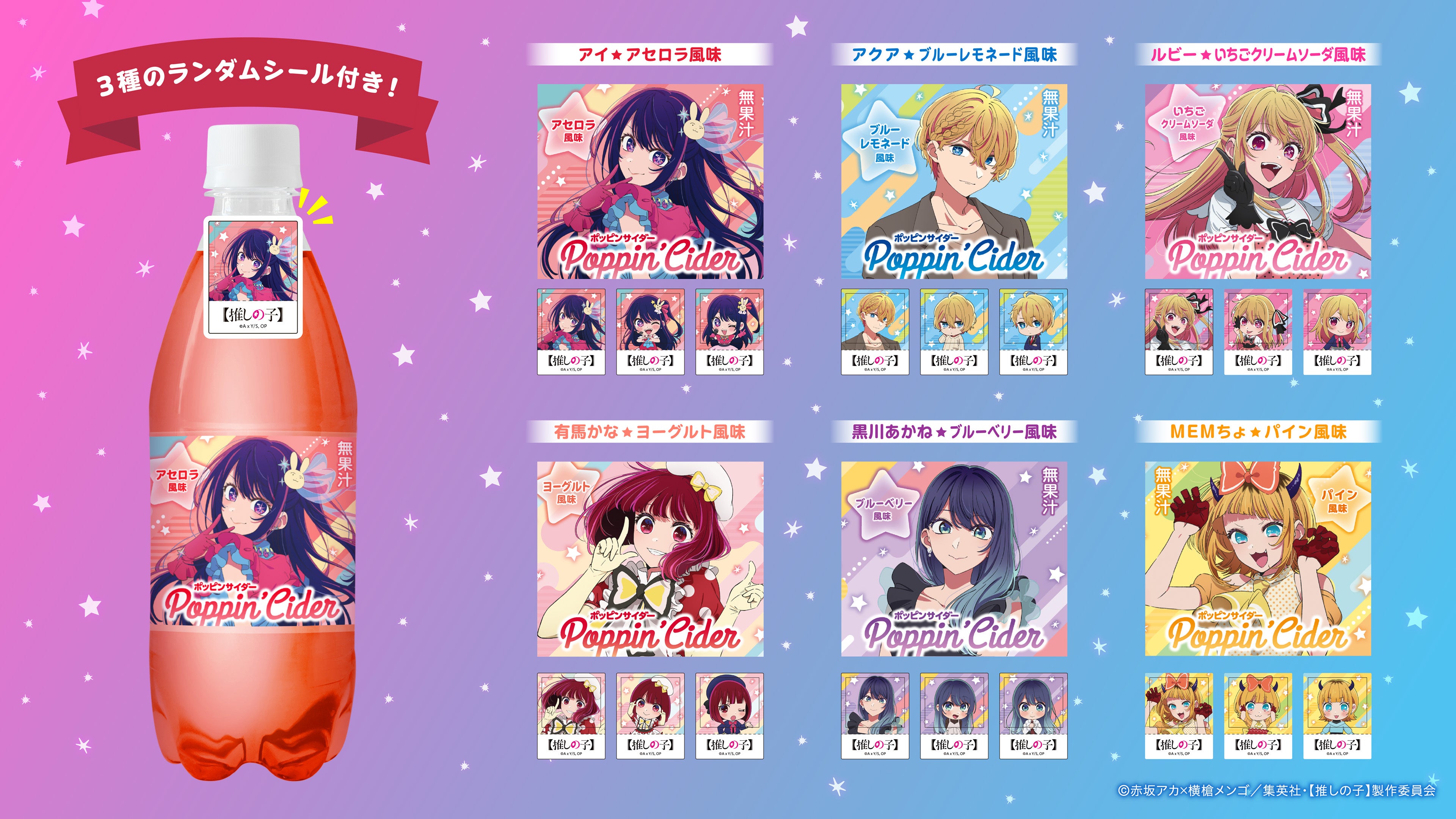 ポッピンサイダー【推しの子】が新登場!個性的なキャラクターたちをイメージした6種のフレーバーで展開