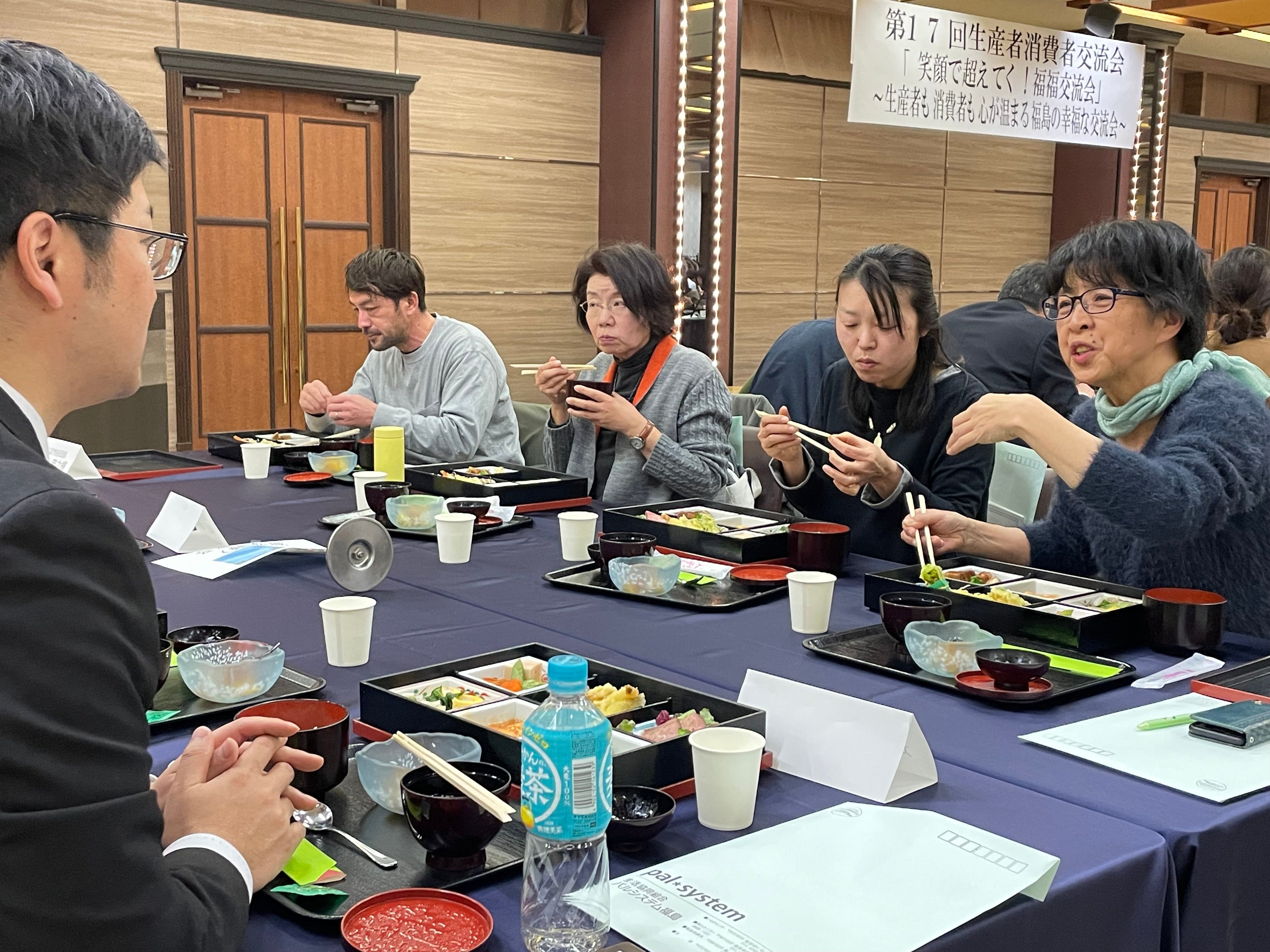 利用者や役職員は、産地への理解を深めながら、手間をかけ生産された食べ物への感謝や商品へのリクエストを伝えます。産地やパルシステムの食材を使ったランチや試食を囲んでお互いに顔を合わせて談笑し、信頼関係を構築します。会場ごとに産地クイズなどのイベントも準備し、共に過ごす時間を楽しみます。