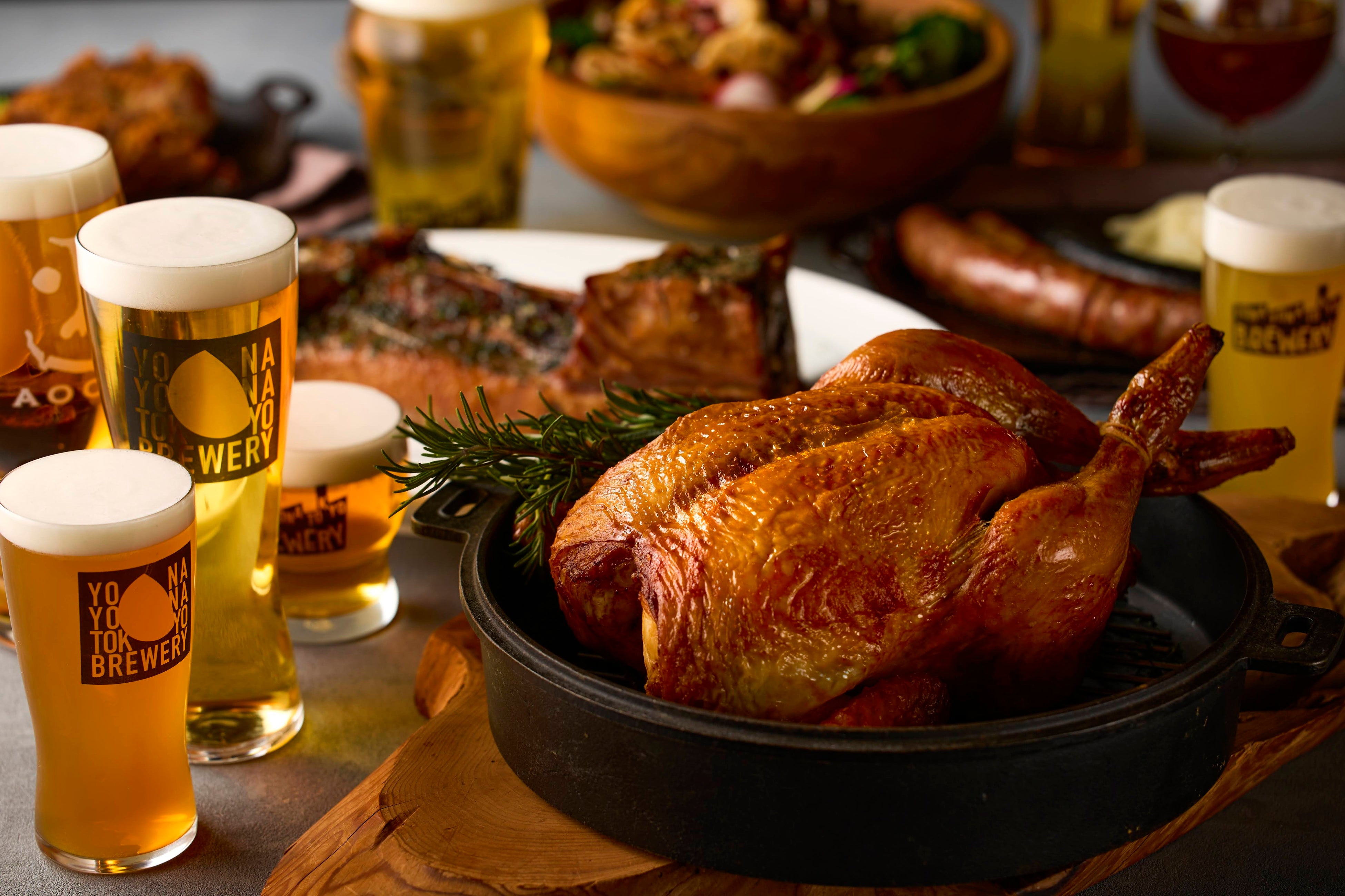よなよな東京ブルワリーでは、クラフトビールとの相性を考えて開発したオリジナルフードを複数提供予定です。看板メニューは「国産ローストチキン」。ジューシーで香ばしい味わいが「よなよなエール」の麦芽由来の甘みとよく合います。その他のフードもすべてクラフトビールとの相性を考えて考案されており、期間限定のメニューも登場予定です。