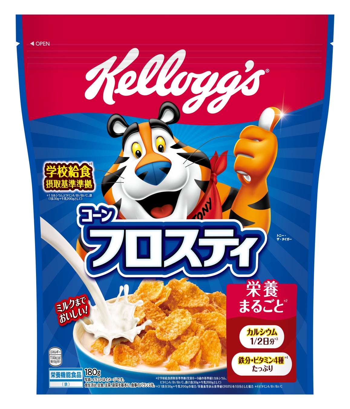 なお、本製品における消費者調査(ケロッグ調べ) *²では、91%の方から「チョコ味がおいしい!」と評価いただき、「コーンフロスティが好きなのと子どもが好きなチョコ味だから買いたいと思った」「フロスティがおいしいから、そのチョコバージョンなら間違いないと思う。子供も好きそう」「学校給食摂取基準は嬉しい。トラの絵に牛乳がおいしそうに見える!」など、多くのポジティブなコメントをいただきました。