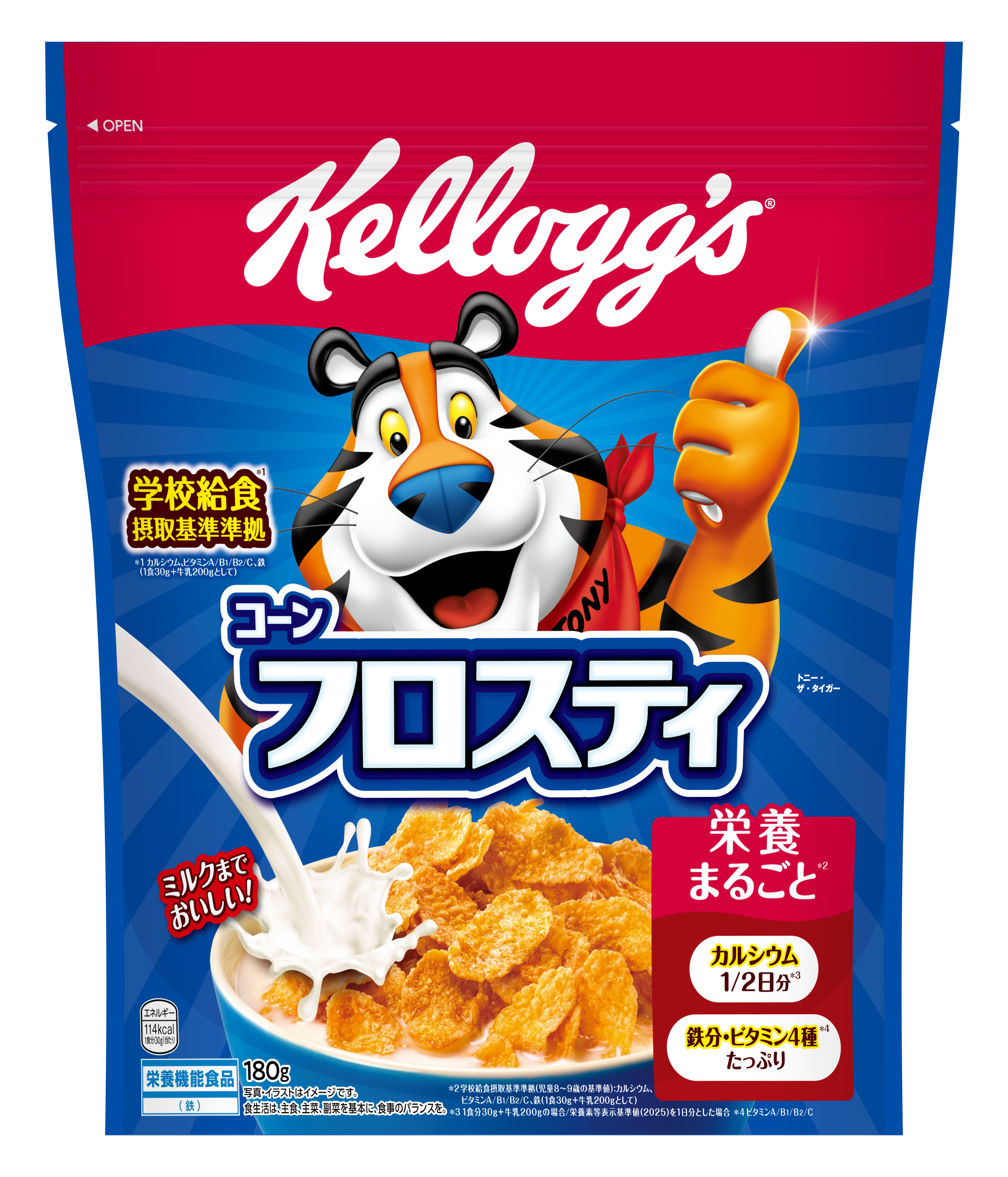 なお、本製品における消費者調査(ケロッグ調べ) *²では、91%の方から「チョコ味がおいしい!」と評価いただき、「コーンフロスティが好きなのと子どもが好きなチョコ味だから買いたいと思った」「フロスティがおいしいから、そのチョコバージョンなら間違いないと思う。子供も好きそう」「学校給食摂取基準は嬉しい。トラの絵に牛乳がおいしそうに見える!」など、多くのポジティブなコメントをいただきました。