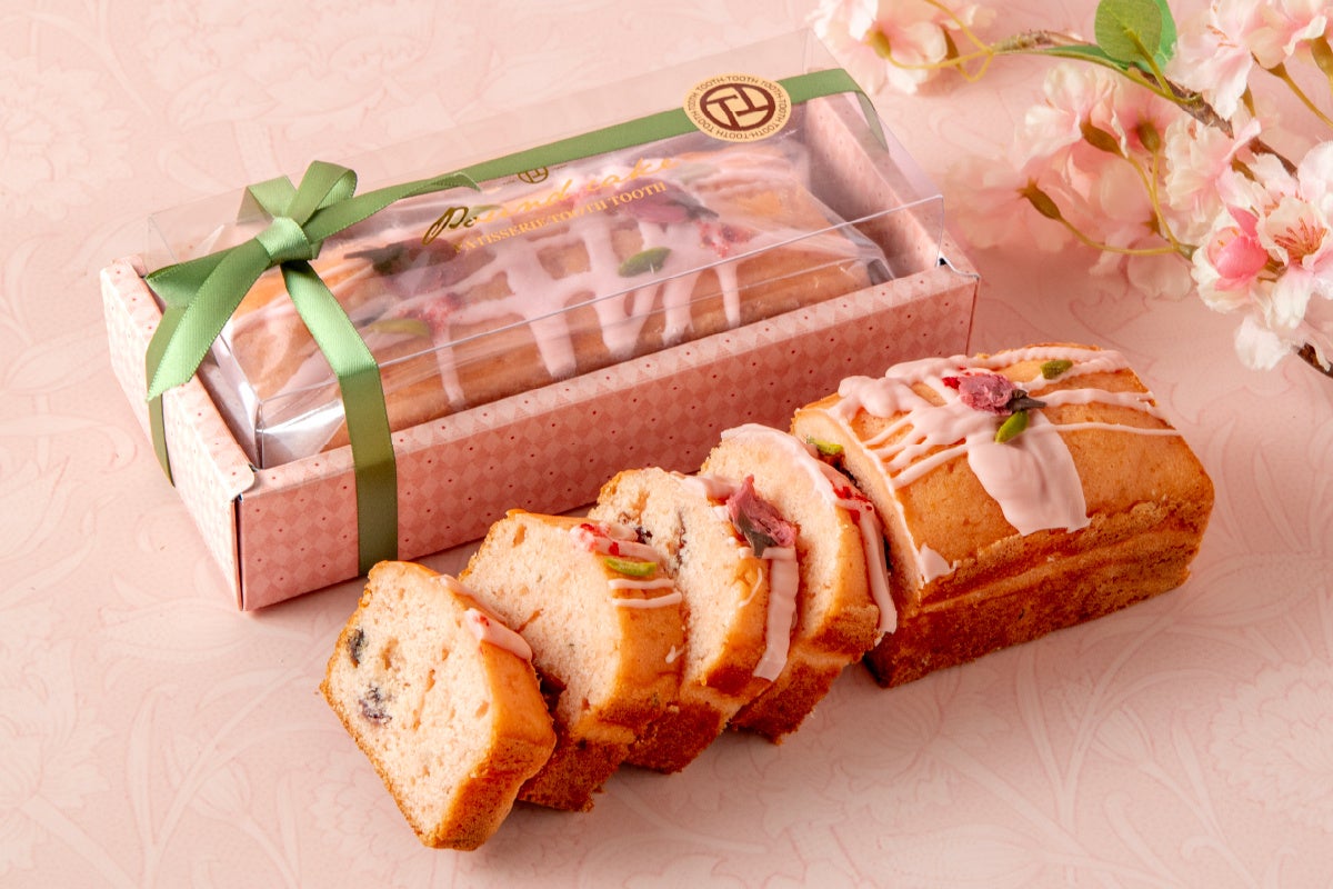 さくらの風味がほのかに香る、やさしい味わいのパウンドケイク。