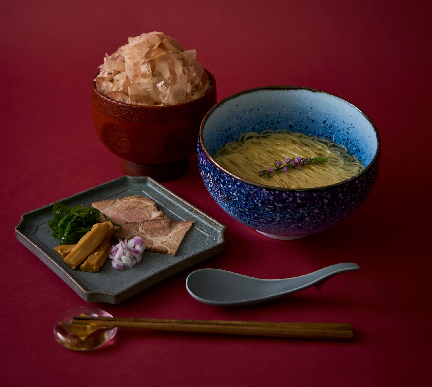 生削り節 × 日本一の卵「夢王」: たまごかけごはん祭り3連覇の濃厚な卵を添えて、出汁に溶き合わせることでスープの旨みをより豊かに深めるのはもちろん、麺を卵にくぐらせる「ディップスタイル」で召し上がっていただくなど、かつお節の風味と卵のコクが溶け合う、洗練された「新しい麺の嗜み」を提案します。
