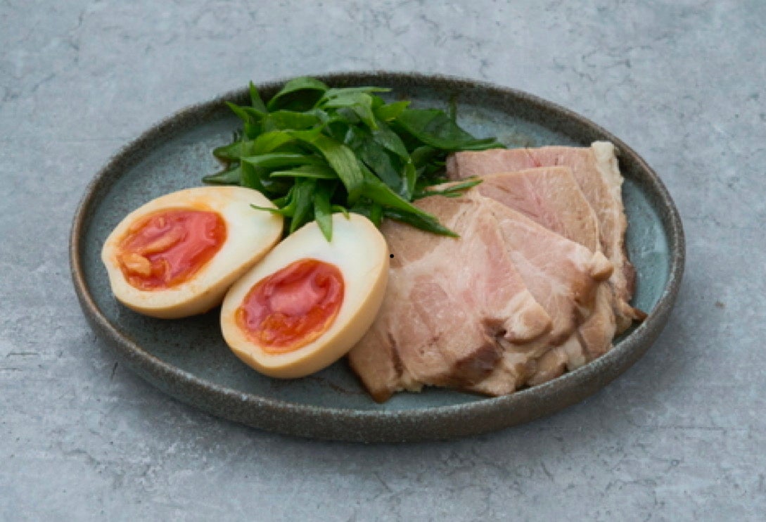 九条ネギ & 焼き海苔 & 特製チャーシュー: 香り高い九条ネギと、出汁に浸すことで真価を発揮する海苔、そして肉厚なチャーシューが脇を固めます。