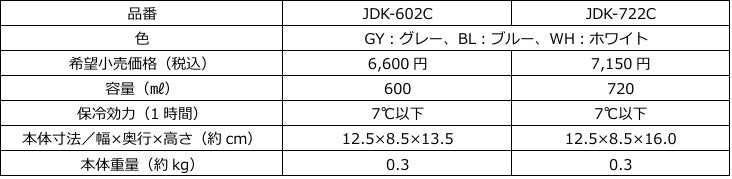 『真空断熱ジョッキ(JDK-602C/722C)』 仕様一覧