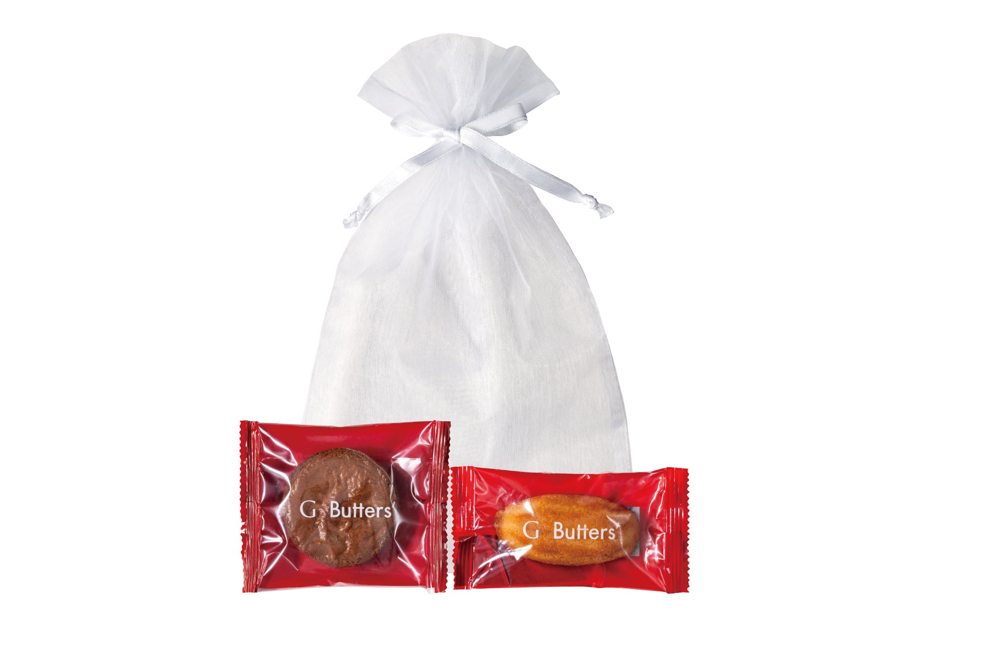「Gバターズ ルクア イーレ店」では、ベルギー産発酵『バター』と『チョコレート』の味わいをふんだんに楽しめるショコラティエならではのバターサンドや、フランス・ブルターニュ地方の伝統的焼き菓子をアレンジしたガレット、しっとりと焼き上げた生地から、ふわっと香るベルギー産発酵『バター』とカカオの味わいが絶妙に調和したフィナンシェなどの定番商品をそろえています。「Gバターズ ルクア イーレ店」オープンを記念して、ガレットとフィナンシェをセットにした特別仕様の「Gバターズ プチギフトセット」が登場します。さらに、オープン記念として、オリジナルアクリルキーホルダー付きプチギフトセットを期間・数量限定で販売します。