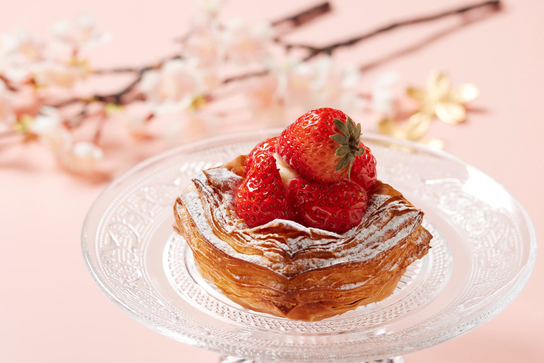毎年人気の定番。サクサク、ほろっとくちどけが良く、バターの風味が豊かなパイ生地に、上品な甘さのカスタードクリームを絞って焼き上げ、さらにカスタードクリーム、フレッシュのいちごをのせた王道デニッシュです。